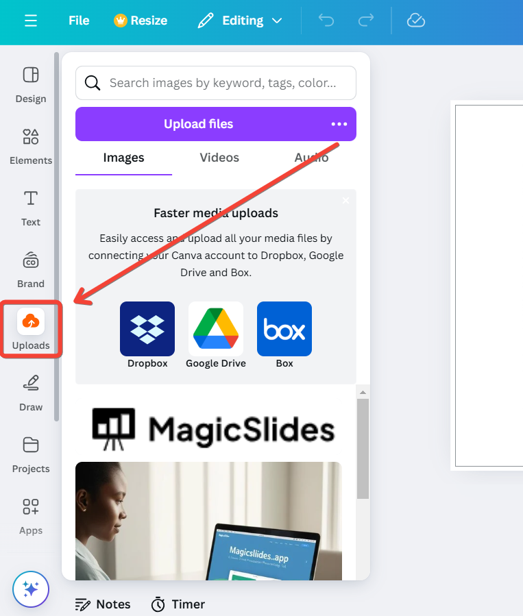 Step 1: Open Canva and Upload Your Video