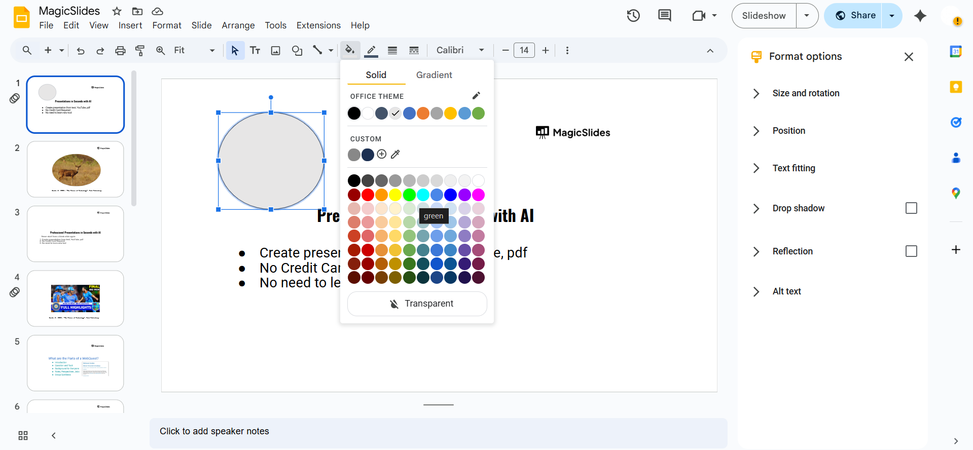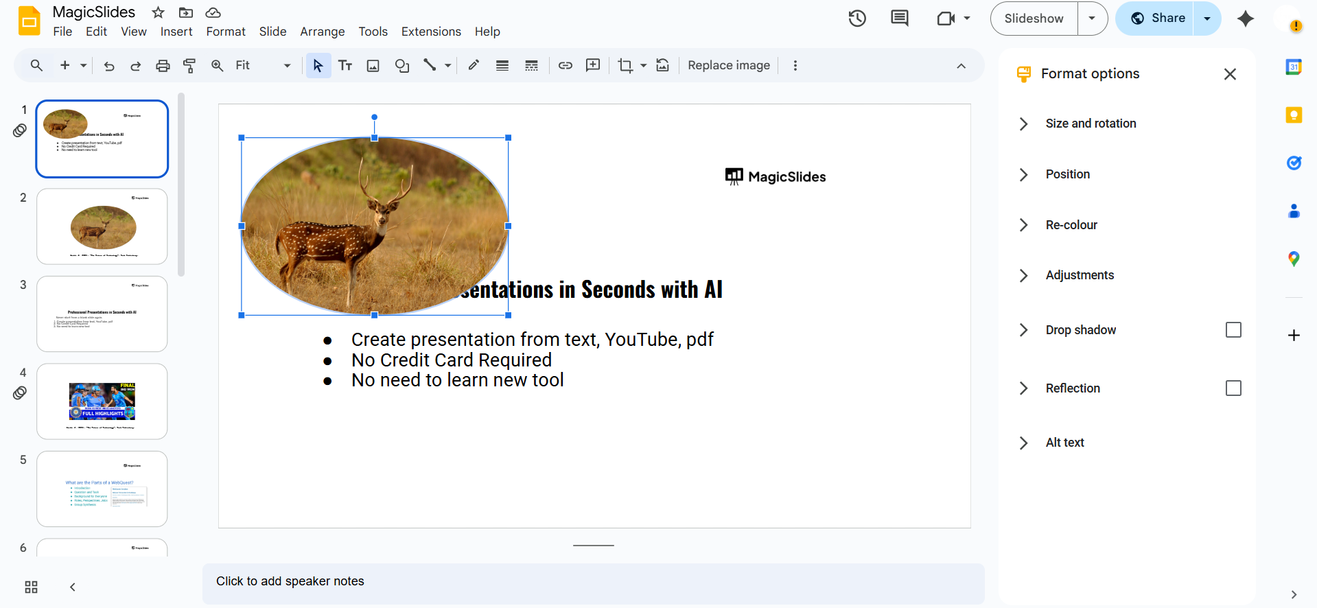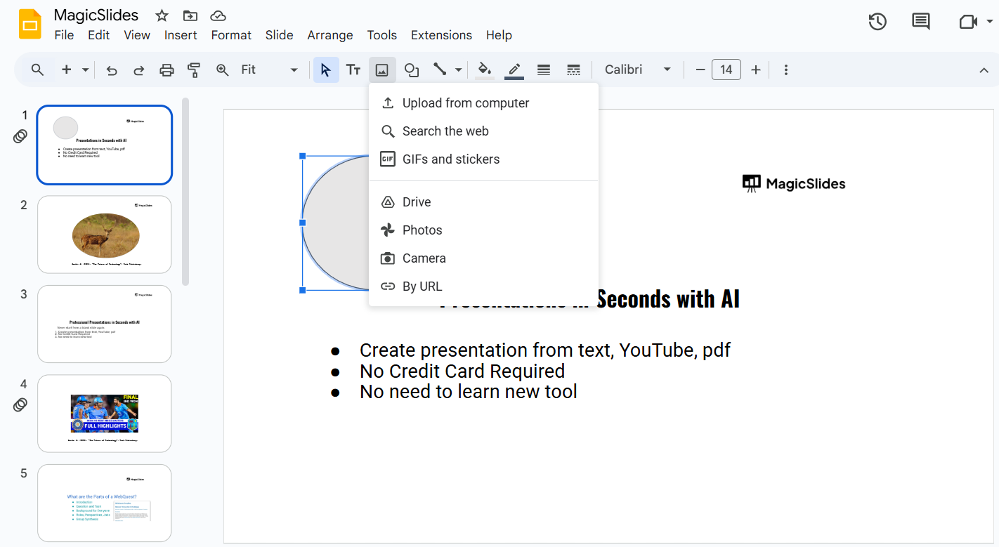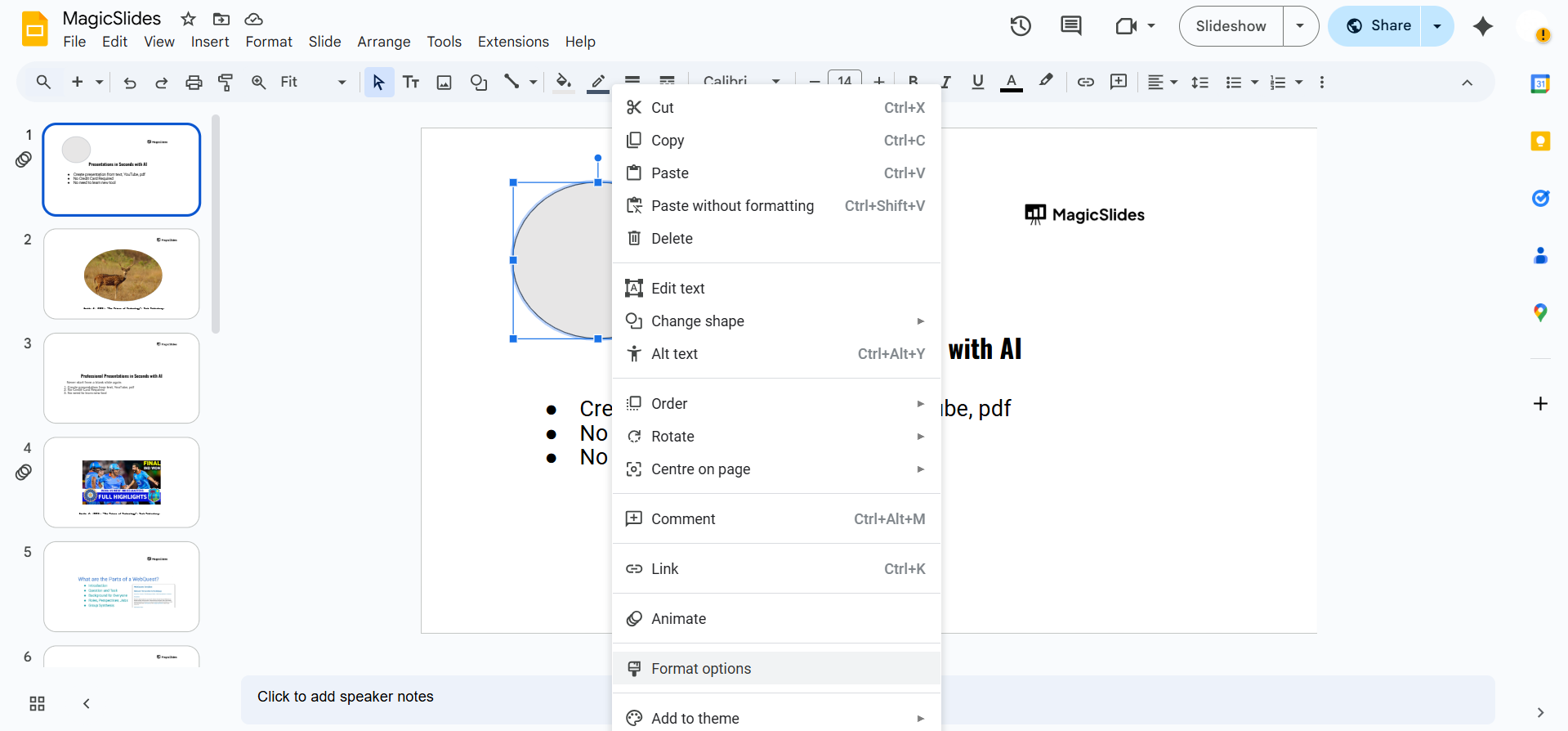 Filling shapes with images adds a creative touch, but if you want AI to handle both design and content for you, check out MagicSlides.app generate professional presentations from any input instantly!
