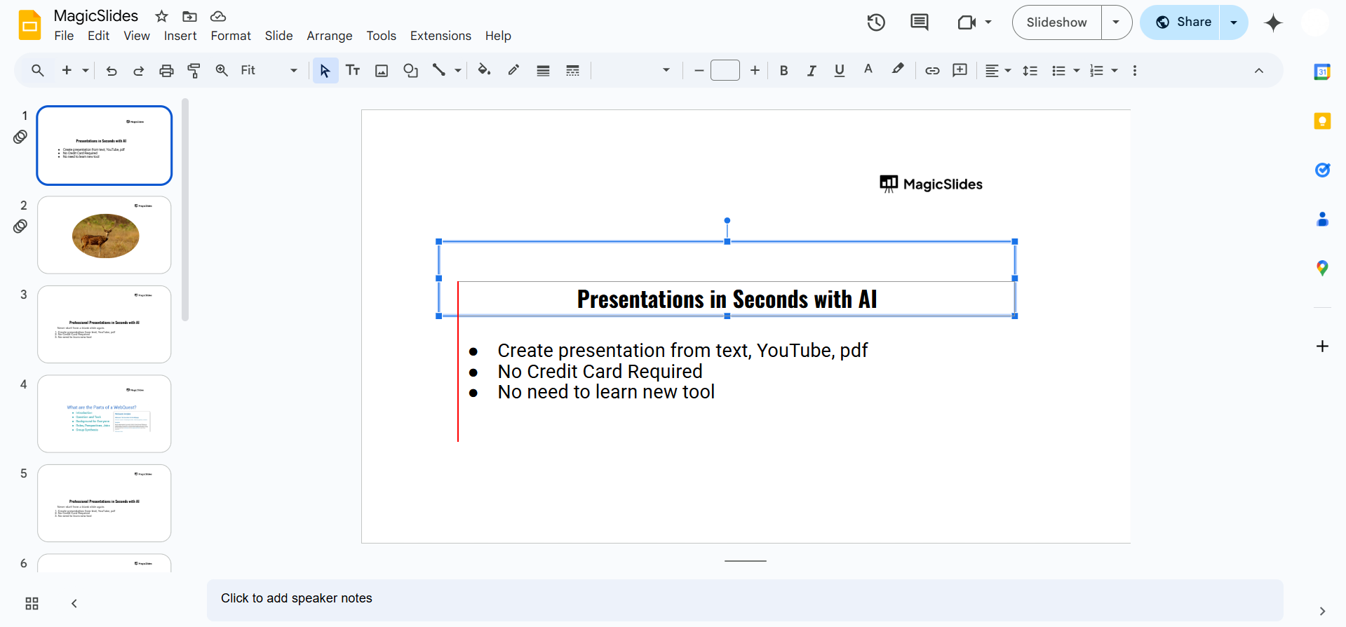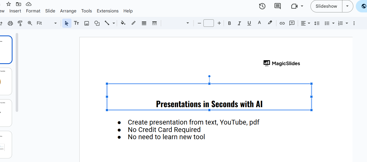 Manually resizing text boxes can be time-consuming. If you want to streamline your presentation workflow, check out MagicSlides.app it generates perfectly formatted slides in seconds, saving you time and effort!