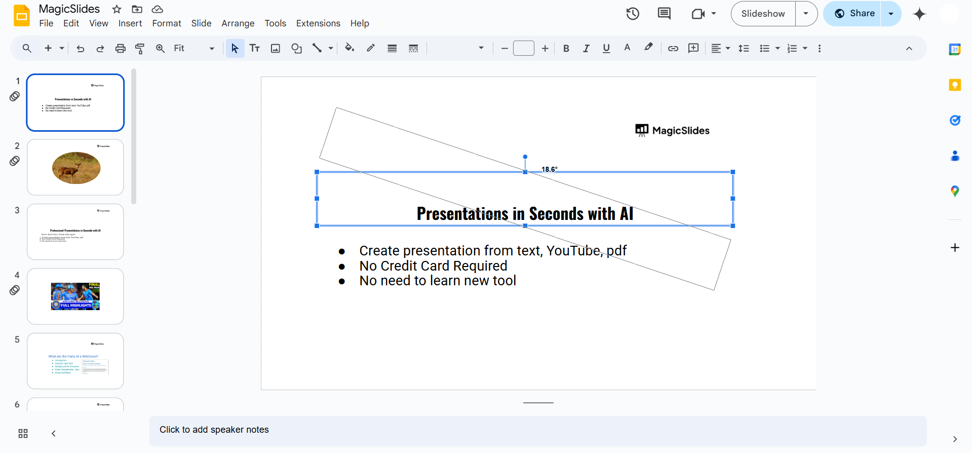 Flipping slides can add a unique visual effect, but if you’re looking for a smarter way to design presentations, try MagicSlides.app AI-generated slides, ready in seconds!