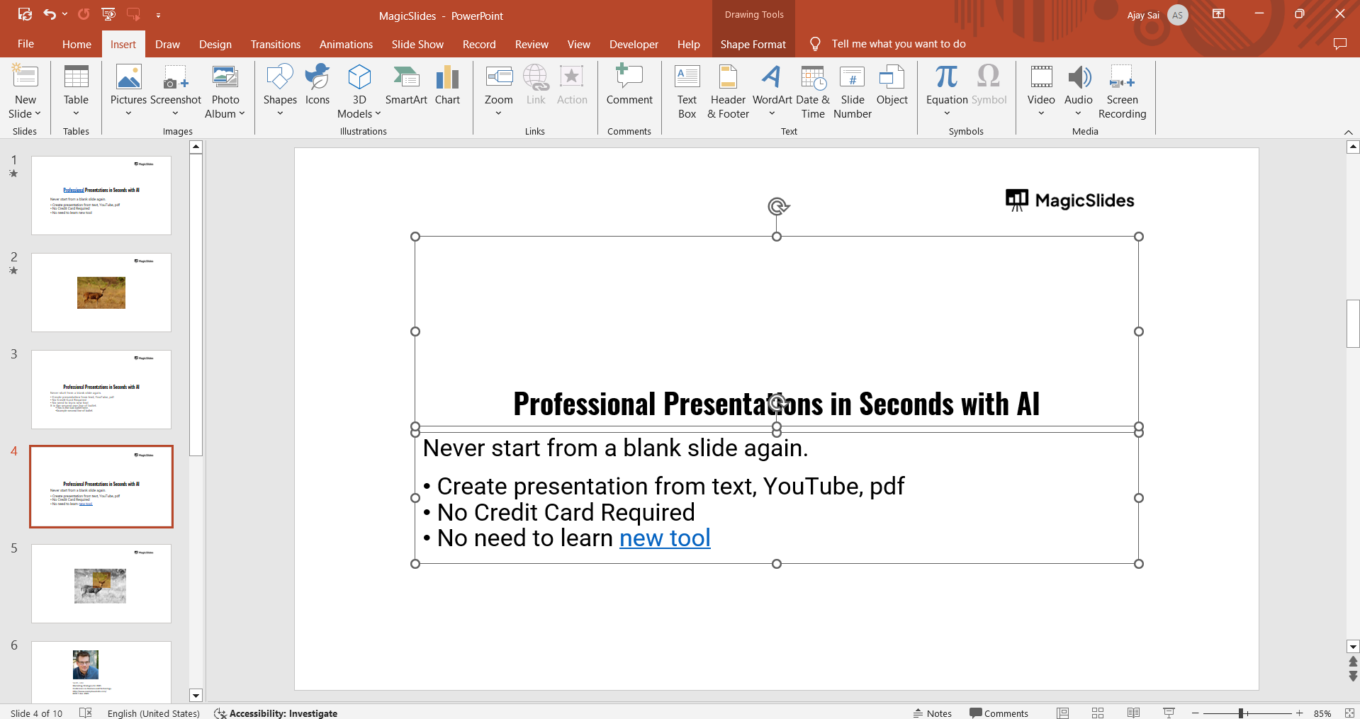 Aligning text boxes manually can be tedious. For a faster way to create well-structured presentations, try MagicSlides.app AI-powered slides generated with perfect formatting in seconds!