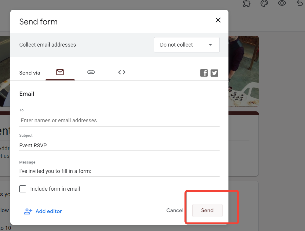 After adding collaborators and setting permissions, click on the "Send" button to share the form with the selected individuals.