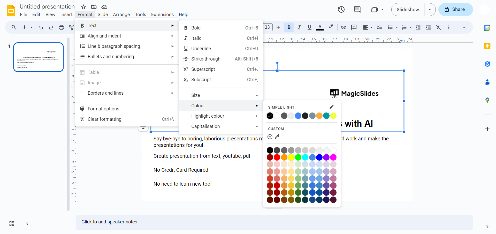 Ans: Yes, custom text colors are preserved when presenting or sharing Google Slides with others.