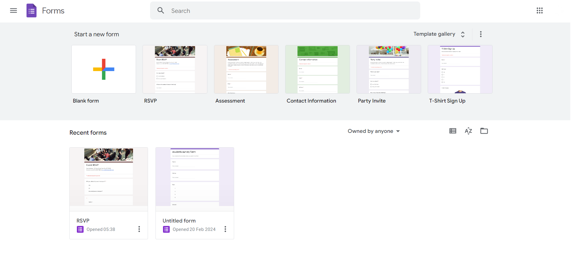 Open your web browser and navigate to Google Forms by visiting forms.google.com or accessing it through Google Drive.