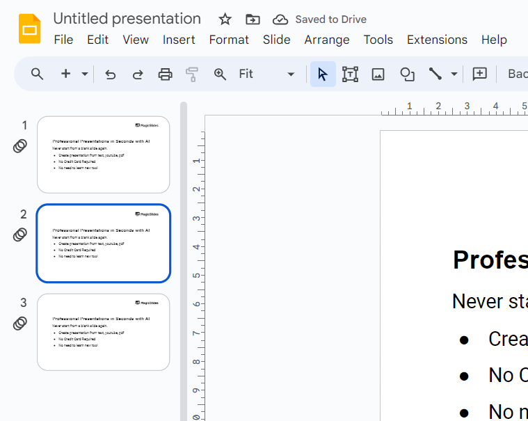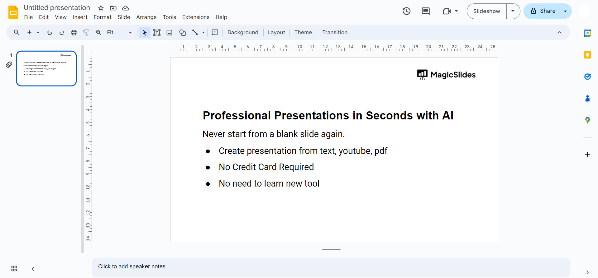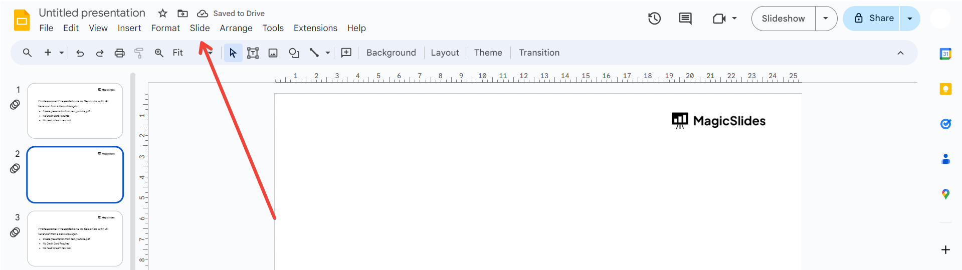 Begin by opening the Google Slides presentation to which you want to add a timer. If you haven't created one yet, go ahead and create a new presentation.
