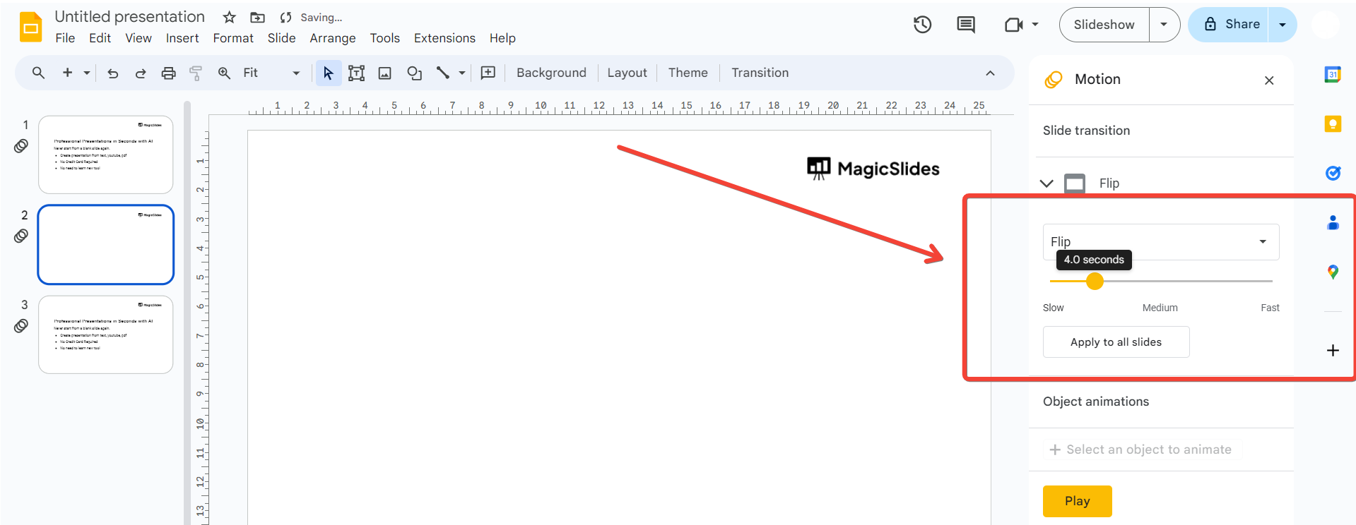 Explore additional transition options to customize the timer. You can choose different transition styles and speeds to add a dynamic touch to your presentation.