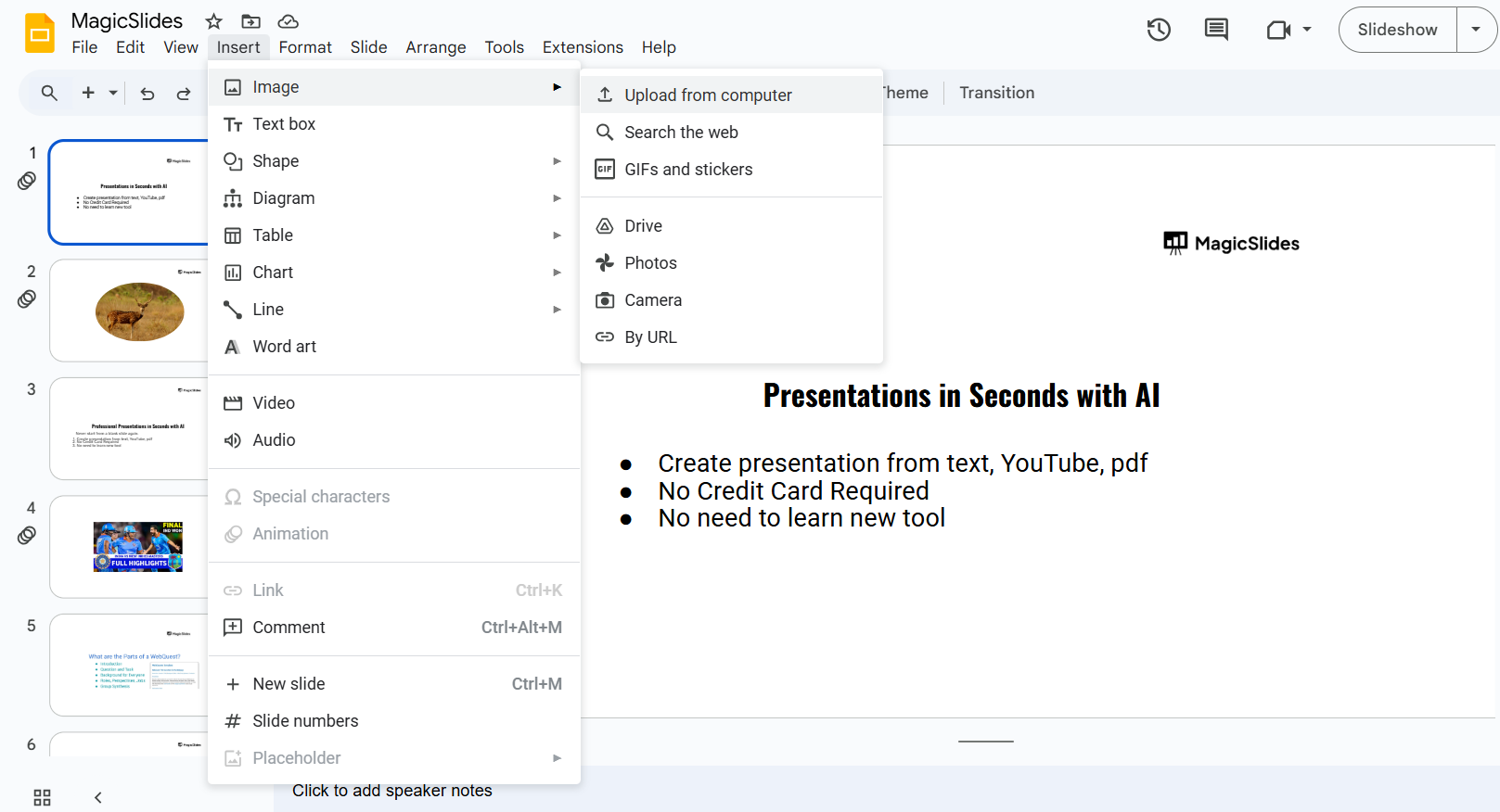 Integrating Canva designs into Google Slides can enhance your presentation. But for a faster way to create AI-powered slides, check out MagicSlides.app turn topics, PDFs, and even YouTube videos into presentations instantly!