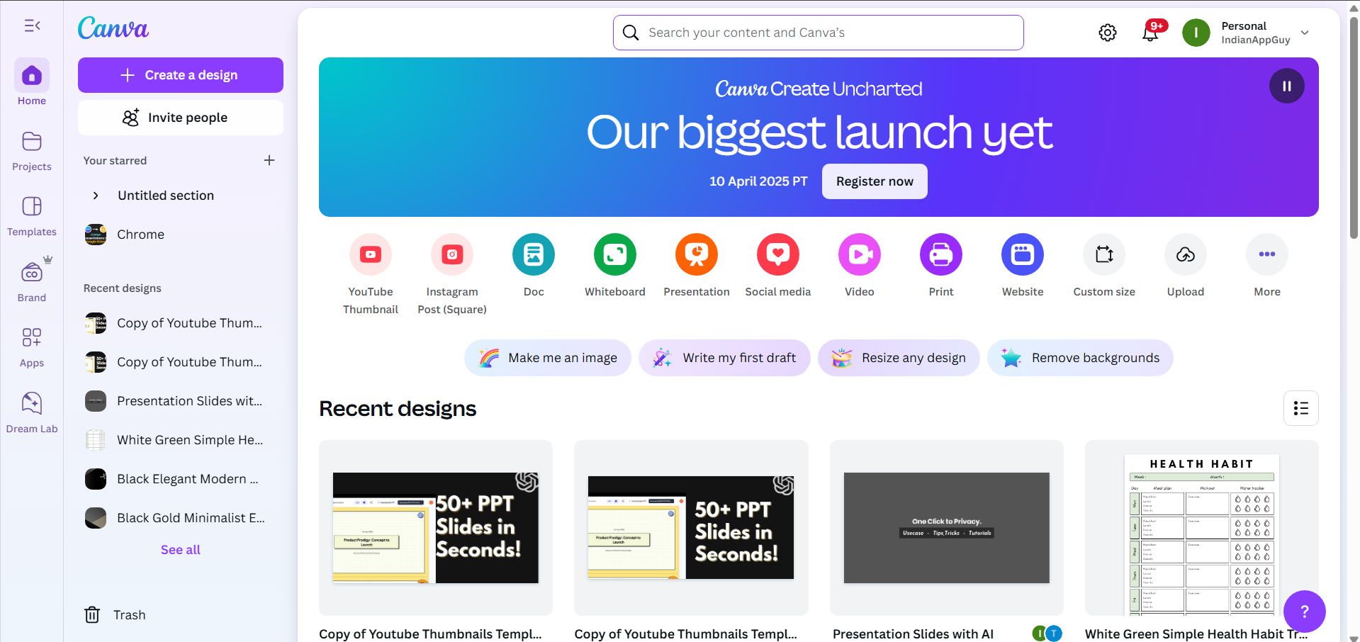Go to Canva and log in to your account. Select a template or start a new design.