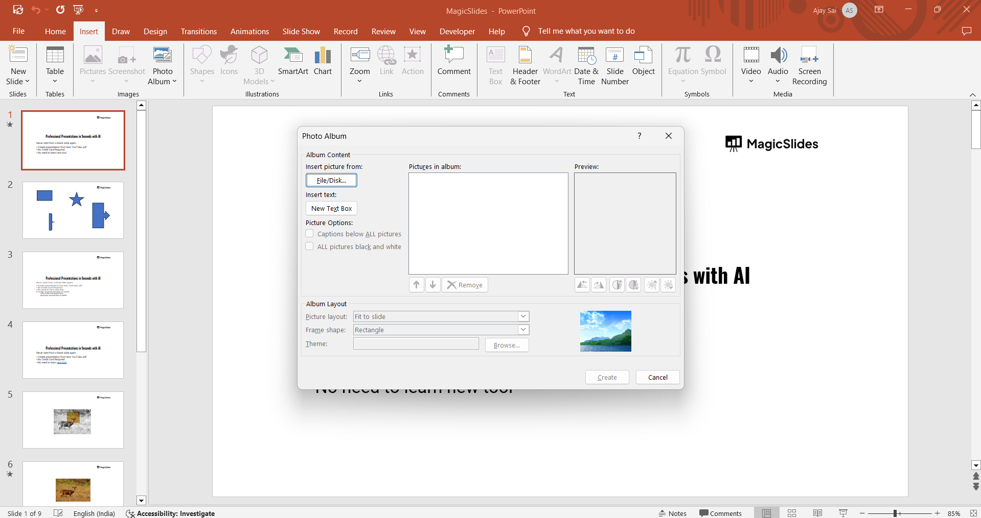 Steps to Insert Pictures in PowerPoint as Individual Slides