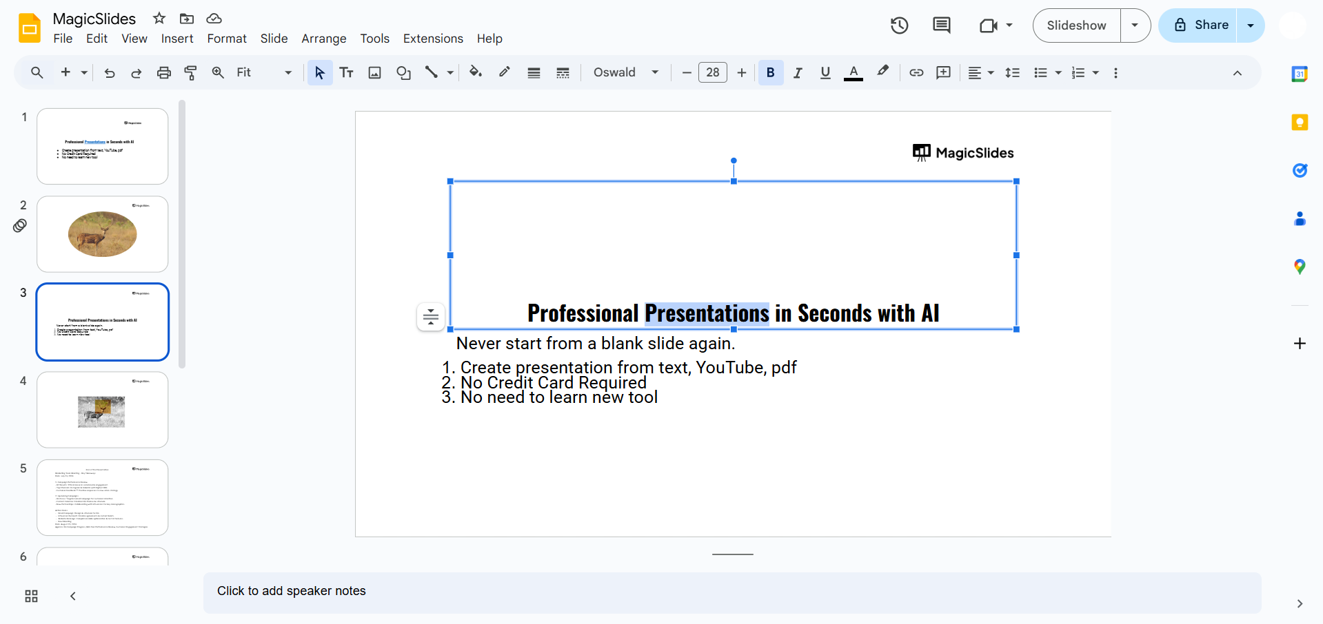 Log into your Google account and open the presentation you want to edit.