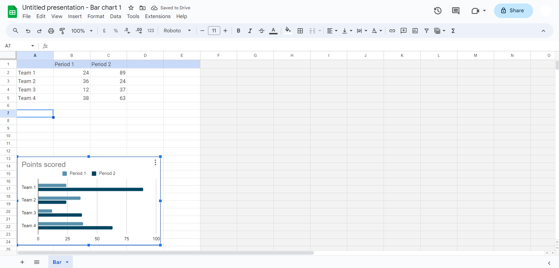 As you click 'Bar'/ any chart that you want to create, witness the seamless insertion of a bar chart into your Google Slides file. The next crucial step involves tailoring the chart to your specific data. Click on the chart to access the source data, allowing you to input your unique dataset and craft a chart that precisely conveys your message.