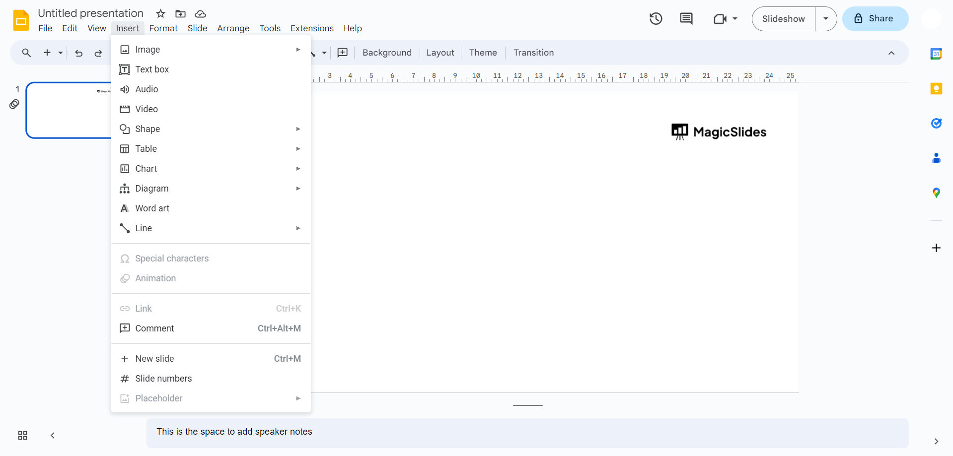 Begin your journey by accessing the 'Insert' menu located on the menu bar at the top of your Google Slides interface. A pivotal starting point, this menu is your gateway to a plethora of elements that can elevate your presentation.