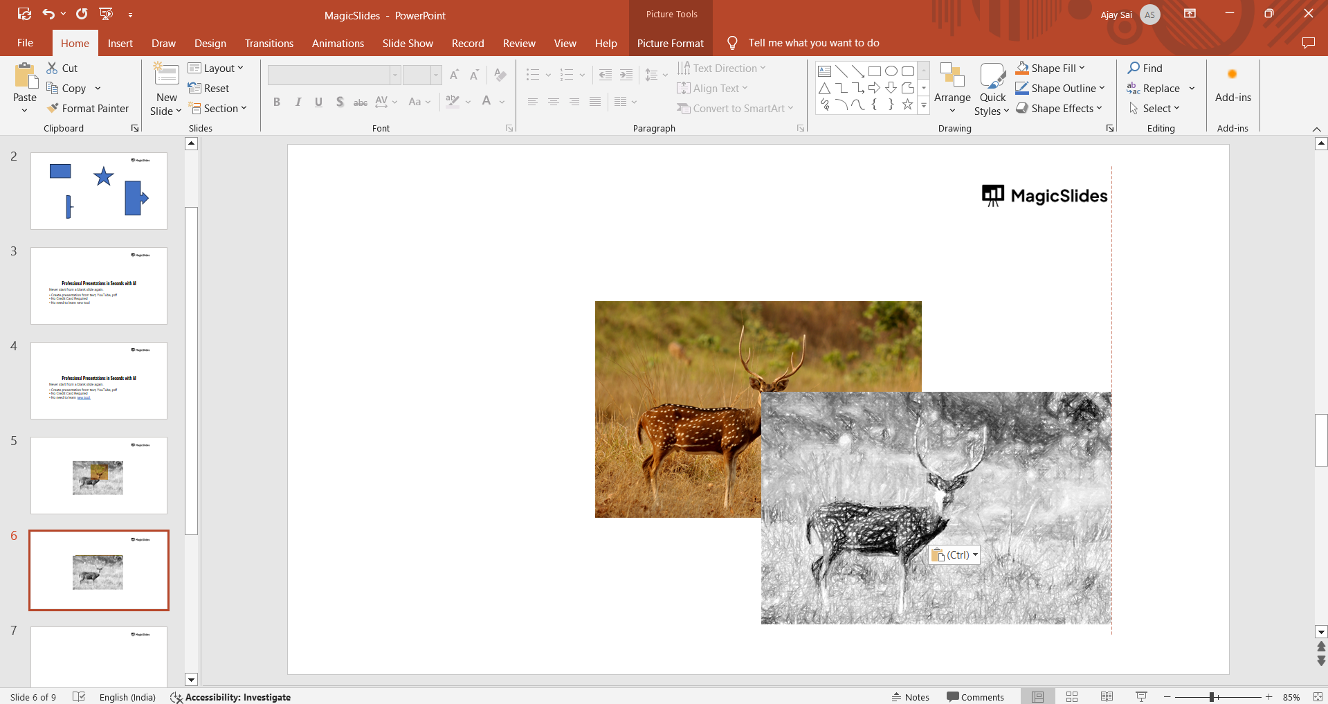 Click on each photo to move, resize, or rotate it, ensuring each slide is visually appealing and suits your layout preferences.