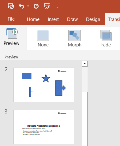How to add morph Transition in PowerPoint