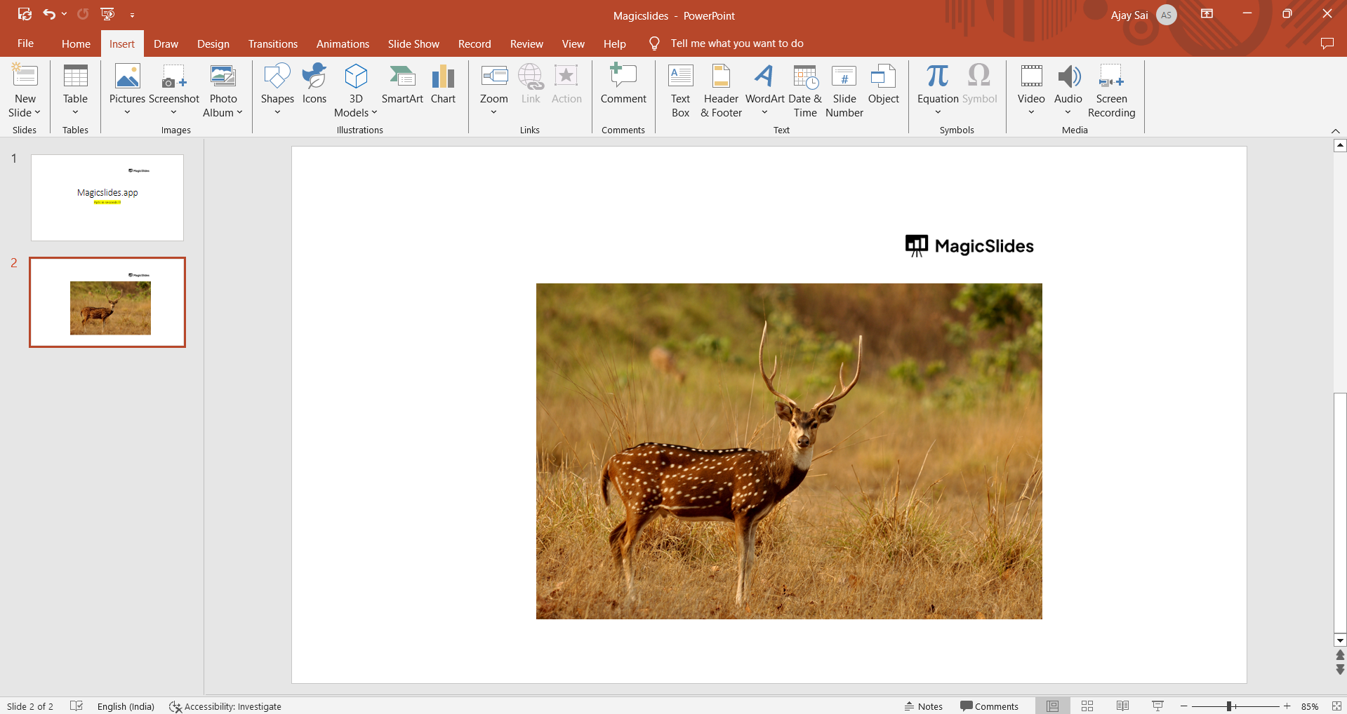 - Navigate to the slide where you wish to add the transparent image and click on the "Insert" tab in the PowerPoint ribbon.