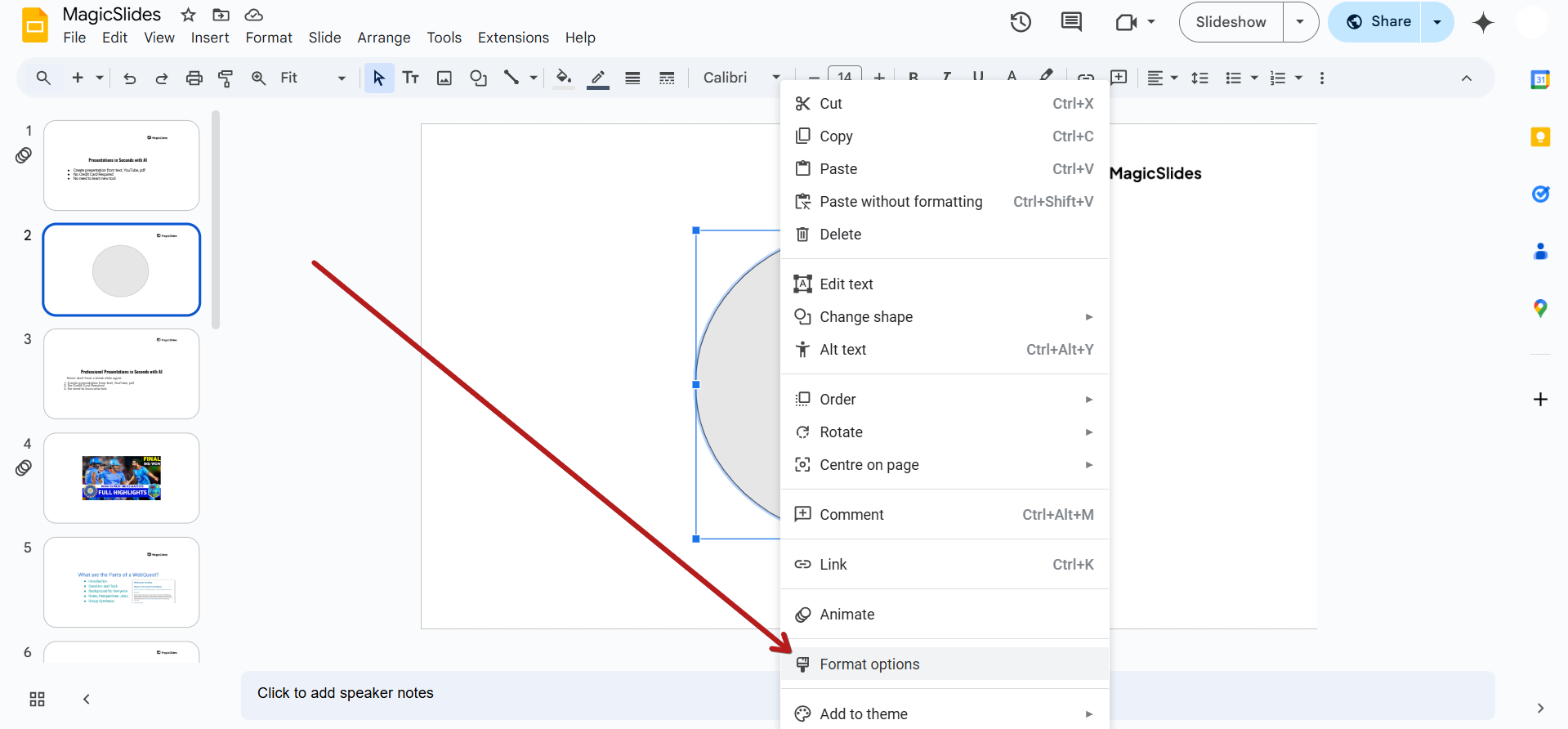 If you don’t see "Format Options," right-click on the shape and select "Format options" from the menu.