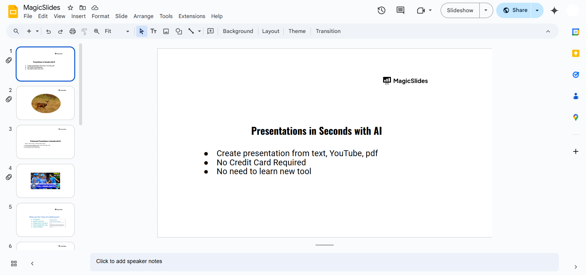 Adjusting opacity in Google Slides can enhance your visuals, but for an even more streamlined design process, check out MagicSlides.app AI-powered slides, designed to your specifications in just a few clicks!