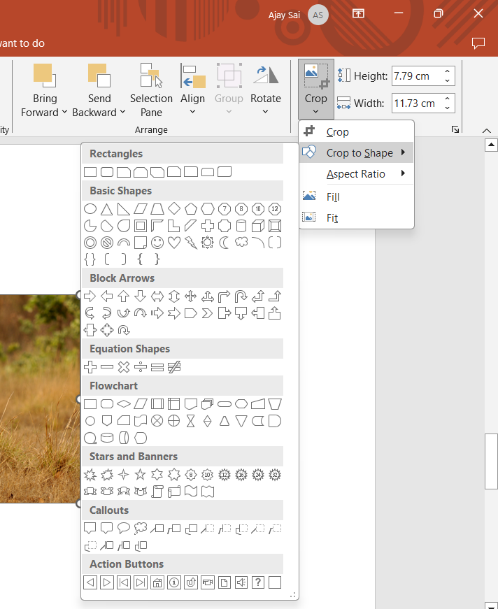 From the dropdown menu, choose “Crop to Shape,” and a variety of shape options will appear.