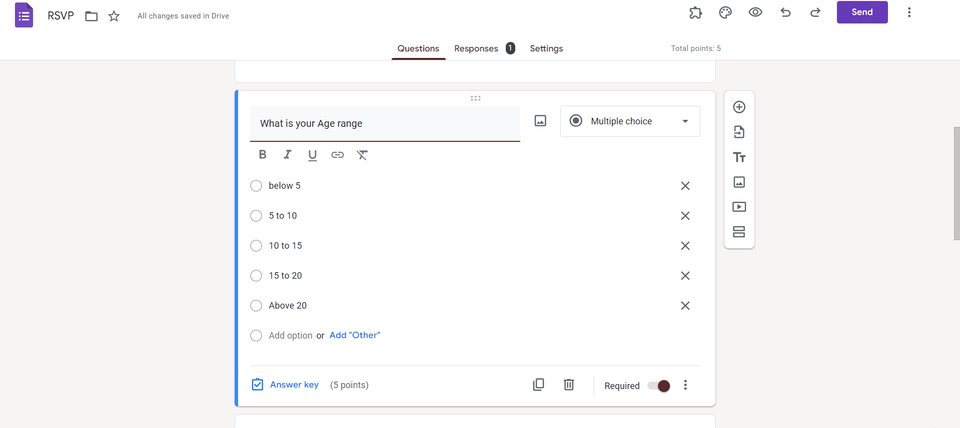 After setting the correct answers and adjusting point values, save your changes. Google Forms will now recognize and score responses based on your specified correct answers.