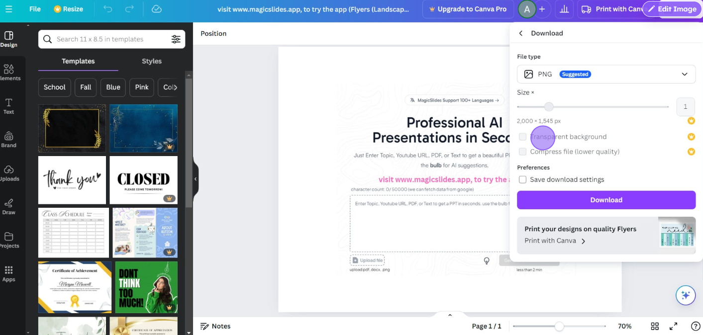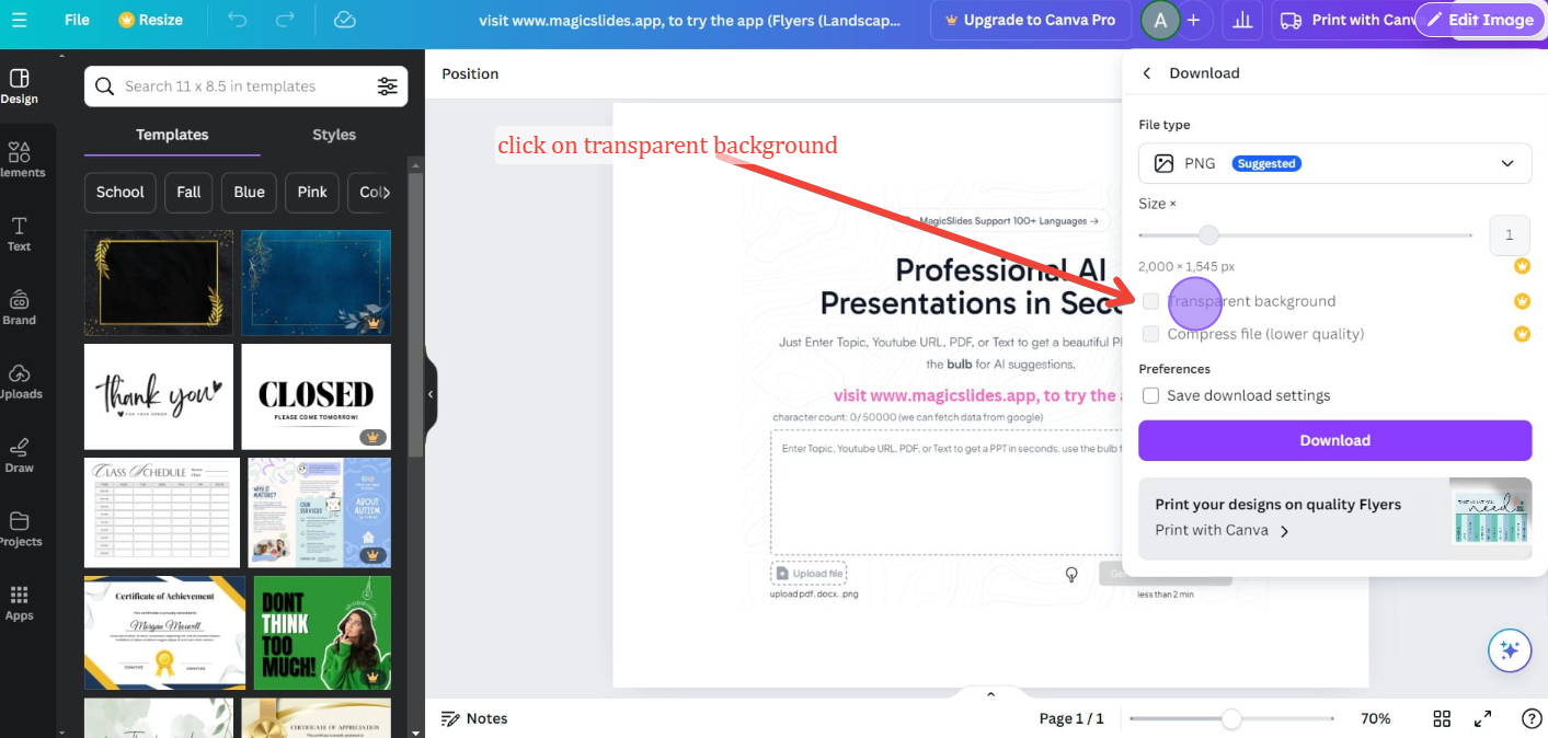 Canva will process your request, and your design will be downloaded with a transparent background.