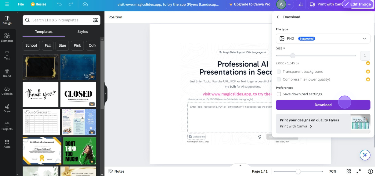 In the download options, you'll see different file formats such as PNG, JPG, PDF, and more.