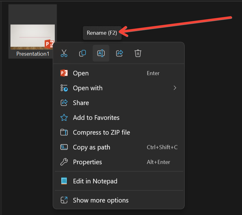 - Rename the File: Right-click on the newly pasted file, select ‘Rename,’ and enter a new name for the presentation to avoid confusion.