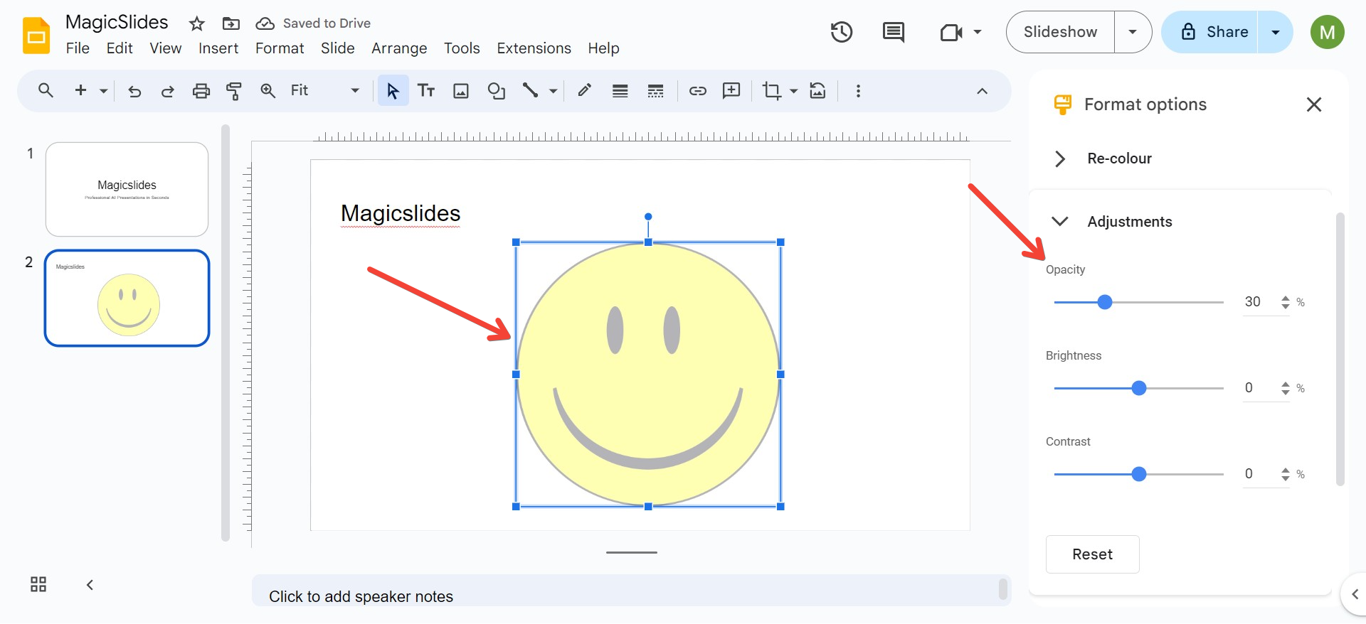- Drag the slider to the right to increase the transparency of the image. The further you drag, the more transparent the image becomes.