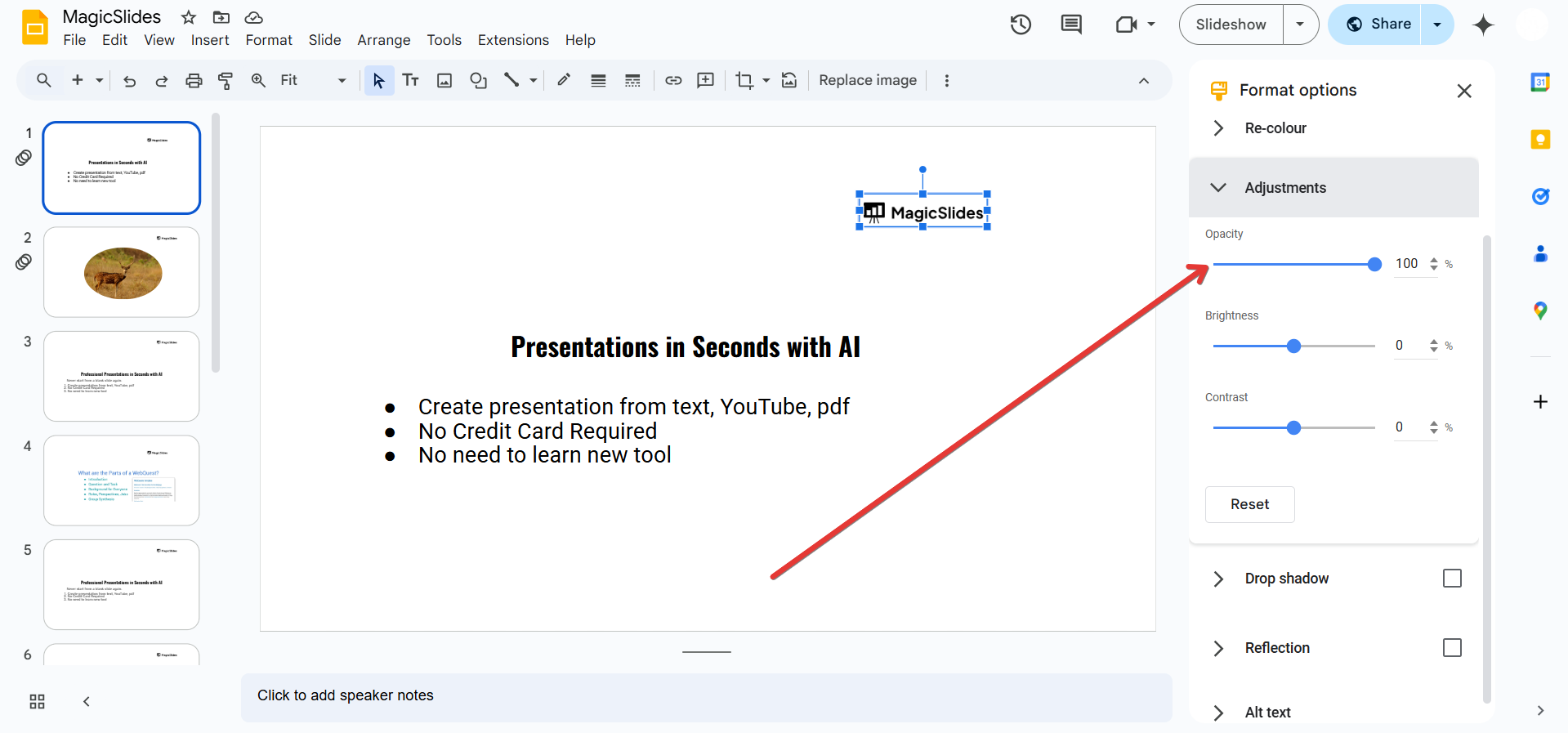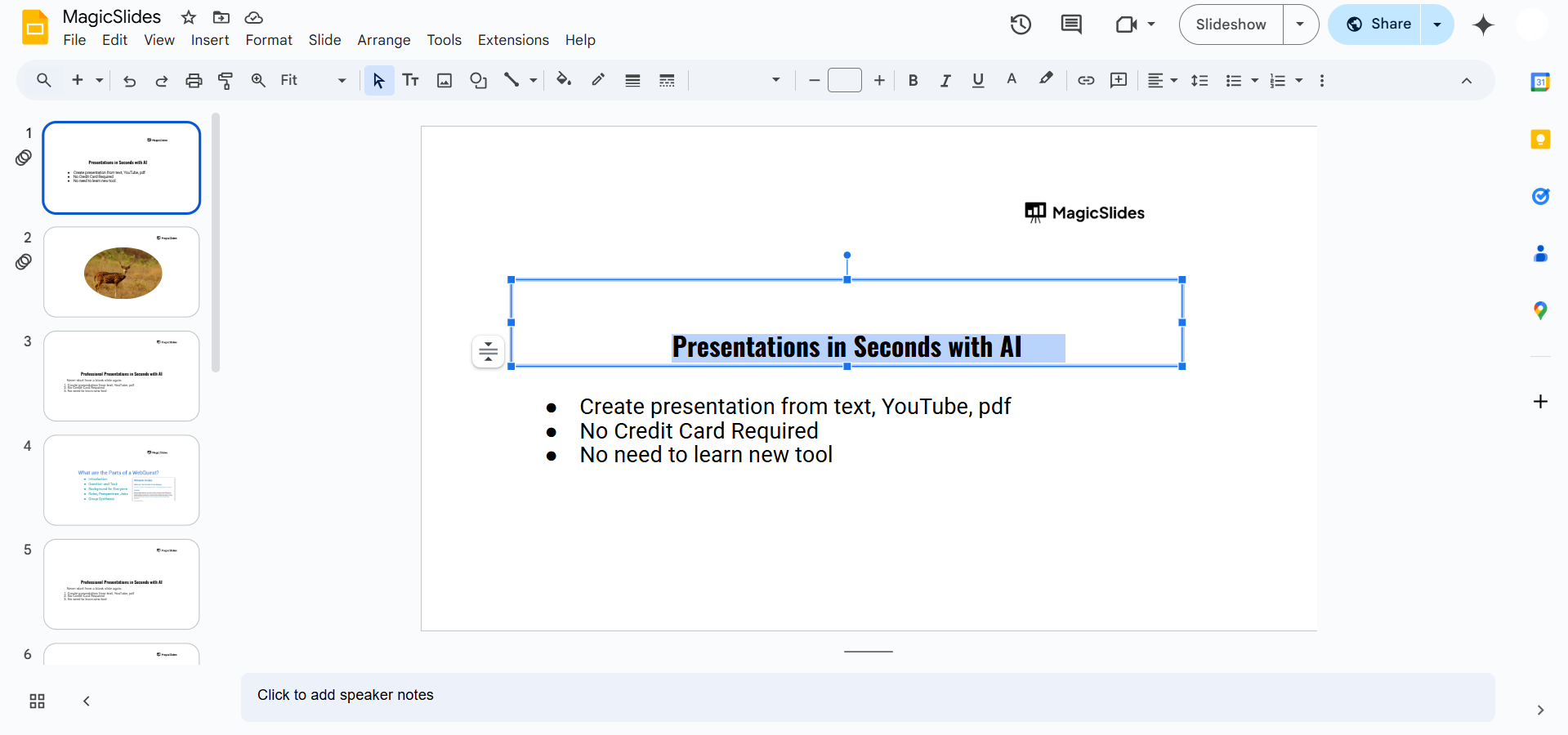 Greying out elements in Google Slides can help highlight key points. But why stop there? With MagicSlides.app, you can create professional, AI-generated slides with custom formatting in seconds!