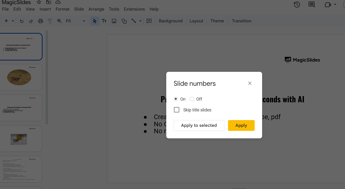 Can I number only specific slides in Google Slides?