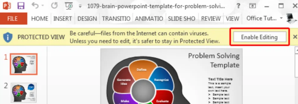 If the file opens in Protected View, click Enable Editing at the top of the window.
