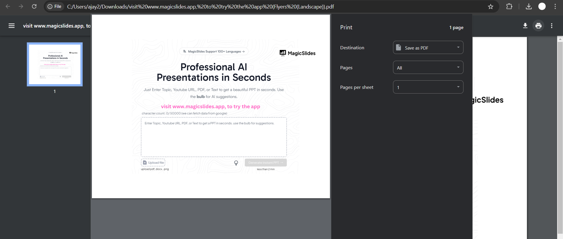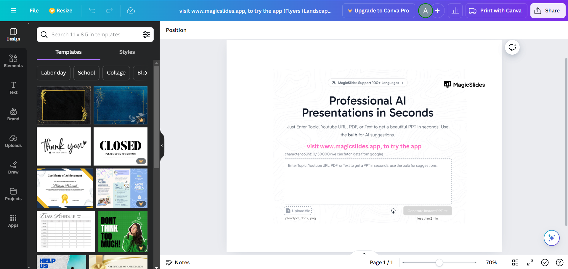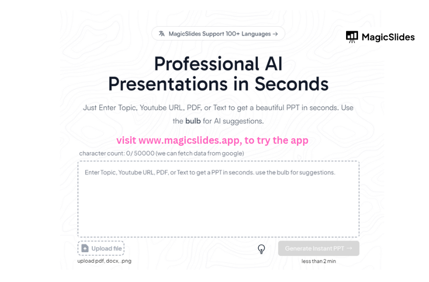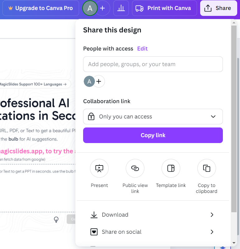 Creating designs on canva can be a daunting task, magicslides.app helps you solve this by creating presentations in less than a minute with just a prompt, check it out and save your valuable time.