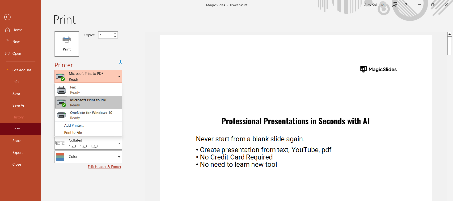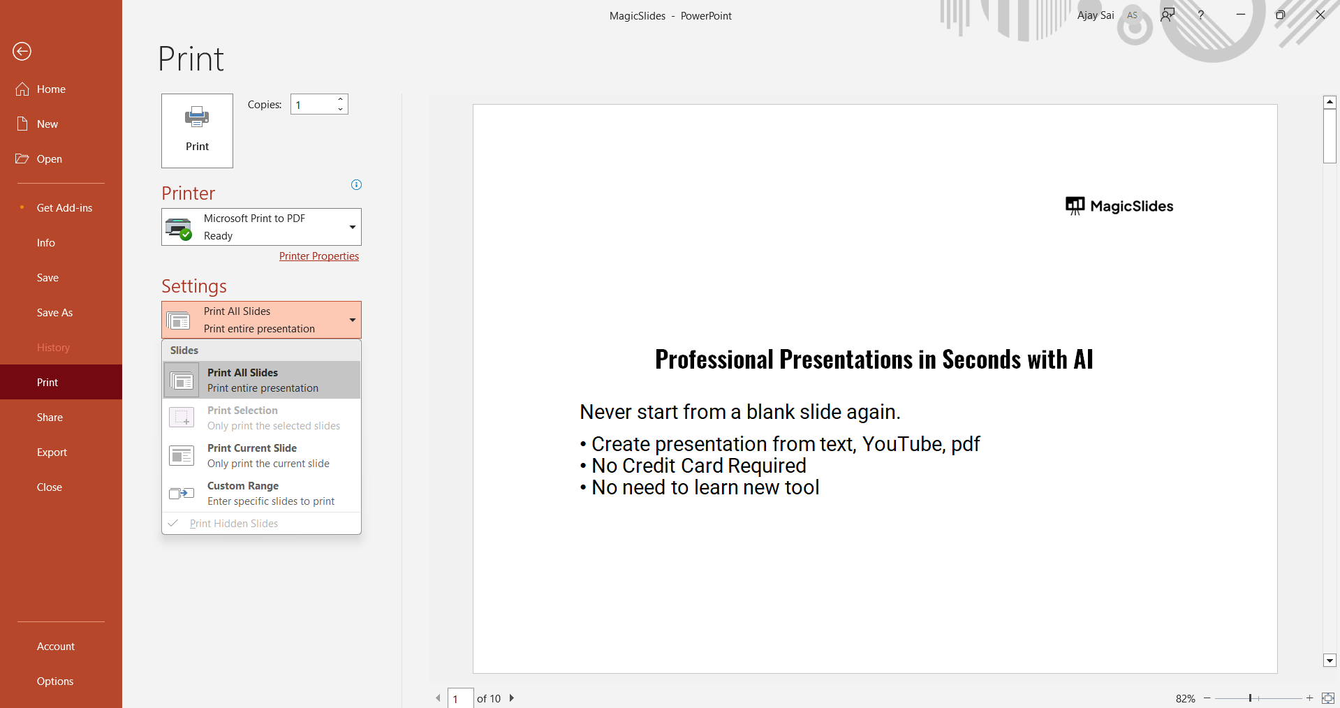 Printing out notes helps with presentation delivery, but if you need a faster way to create high-quality slides, check out MagicSlides.app. It transforms topics, PDFs, and even YouTube videos into polished presentations effortlessly!