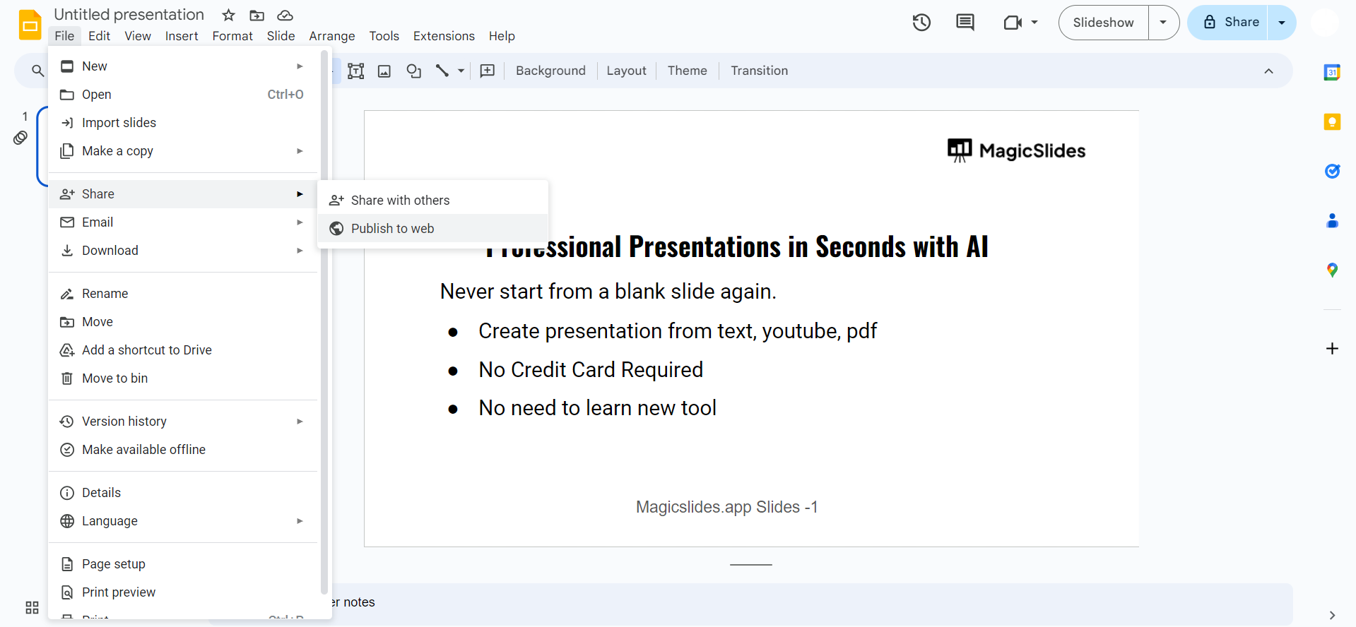 How to publish Google slides