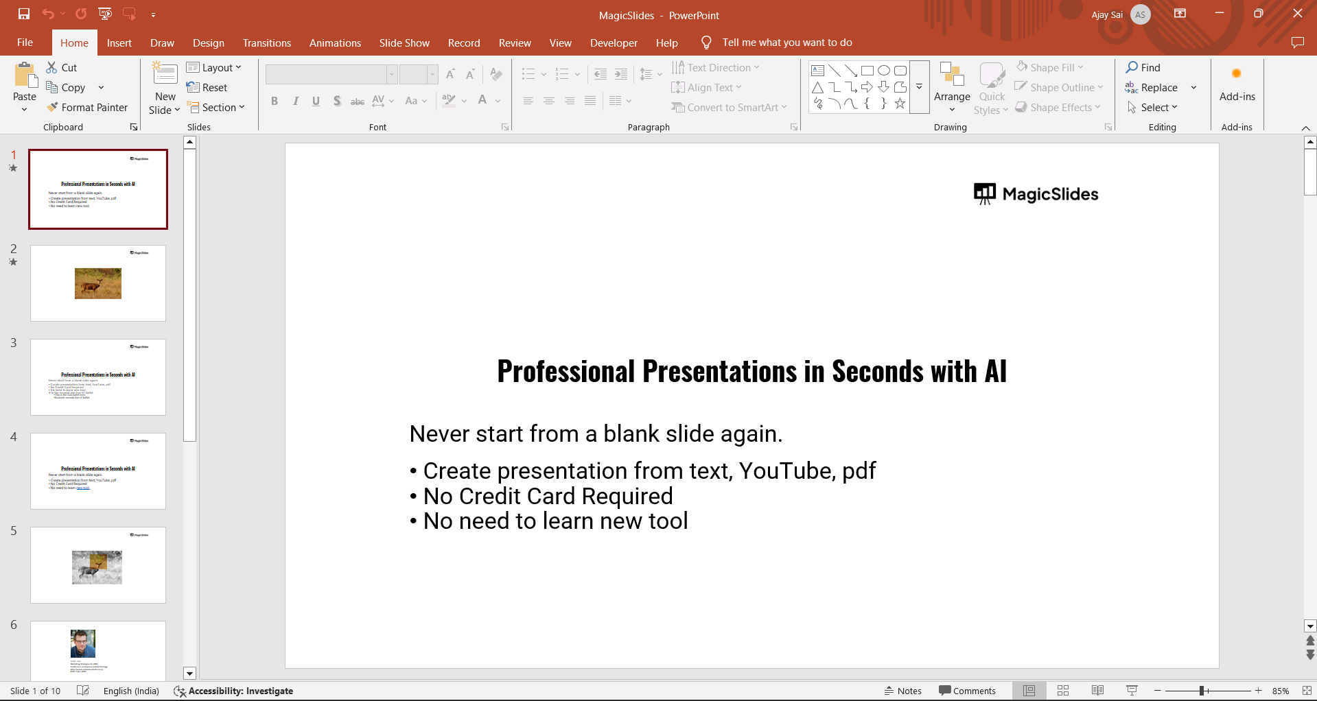 Layering images in PowerPoint helps improve slide design, but for a quicker way to create visually appealing slides, check out MagicSlides.app AI-generated presentations with perfectly structured layouts!
