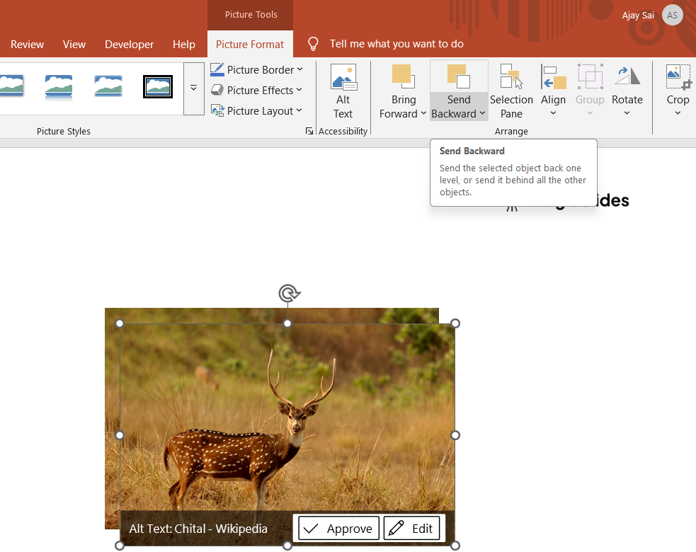 If the image still isn’t behind the desired object, click Send to Back to move it behind all elements.