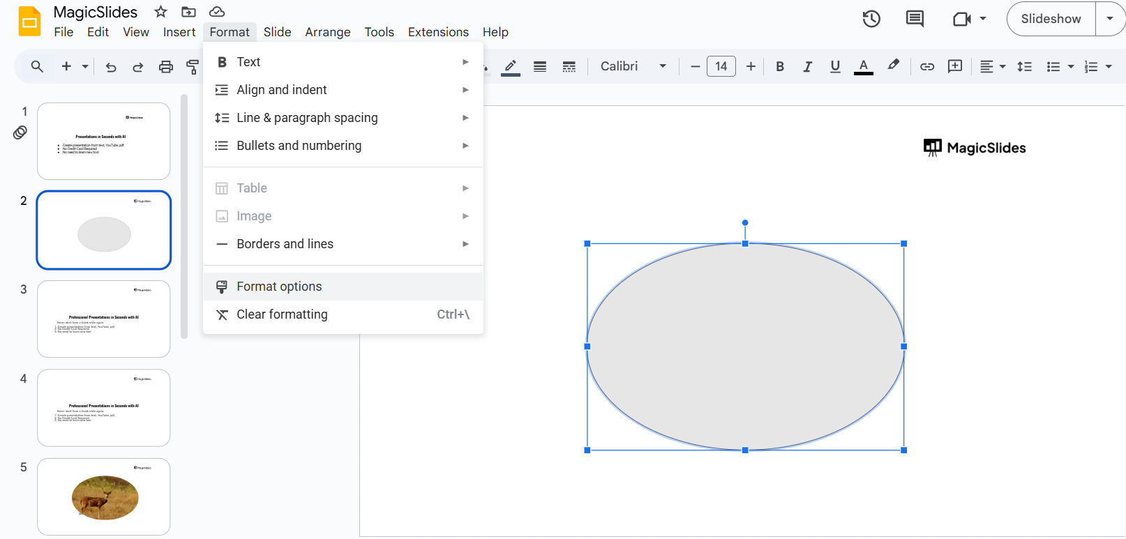 Right-click on the shape and choose “Format options.”