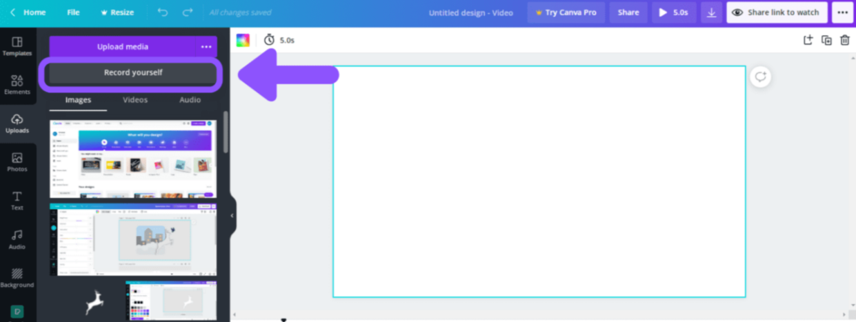 - To record directly inside Canva: