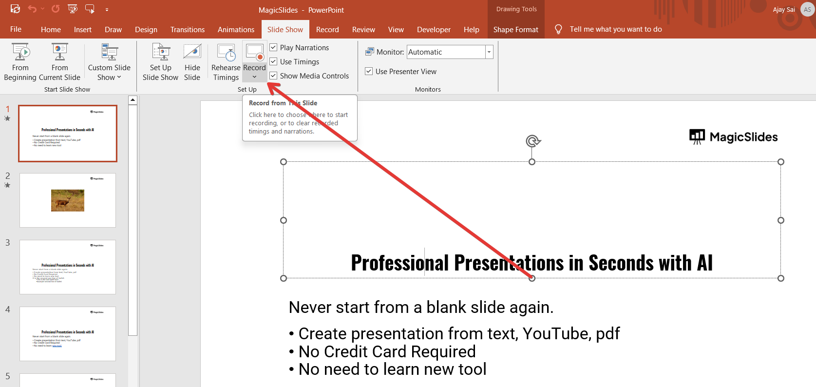 Select Record Slide Show from the options.