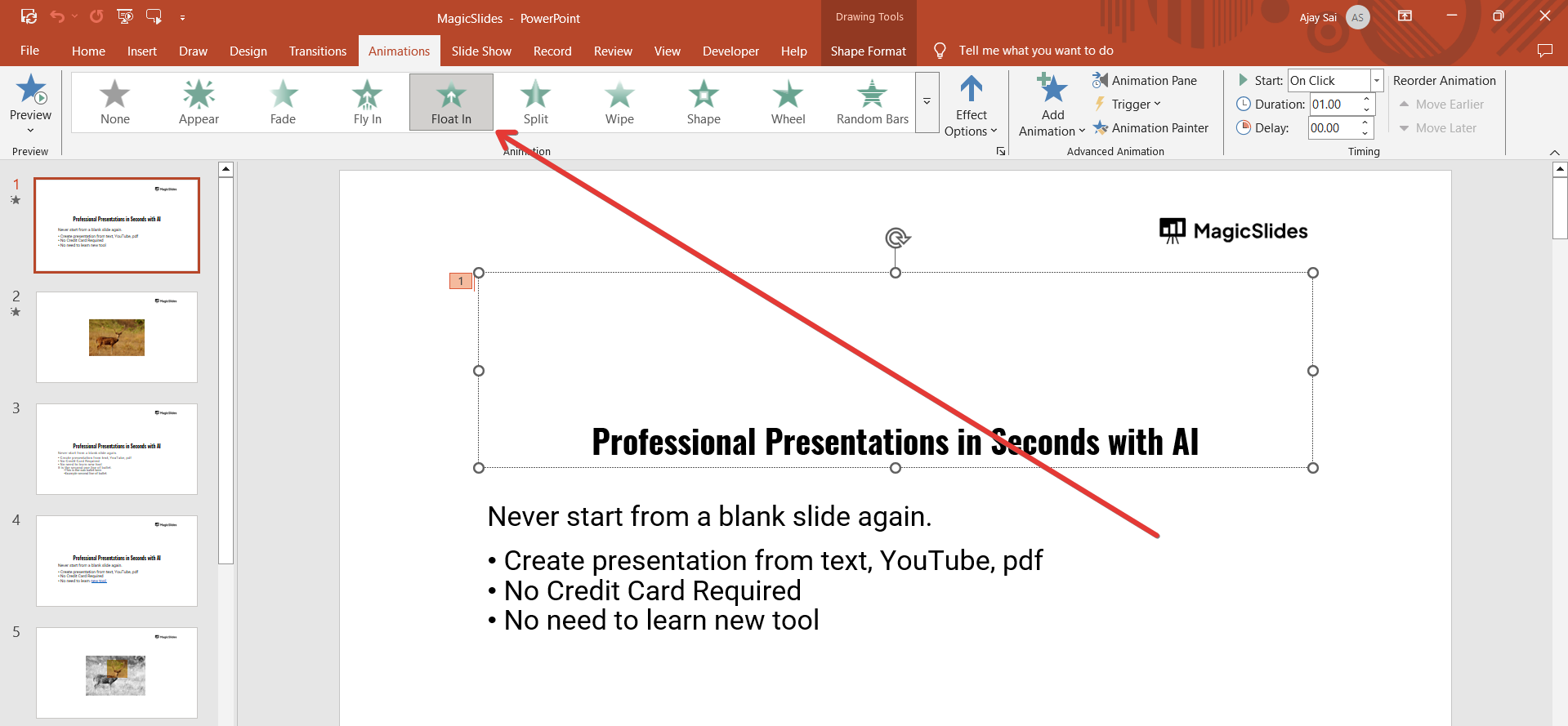 Click on the Animations tab in the toolbar.