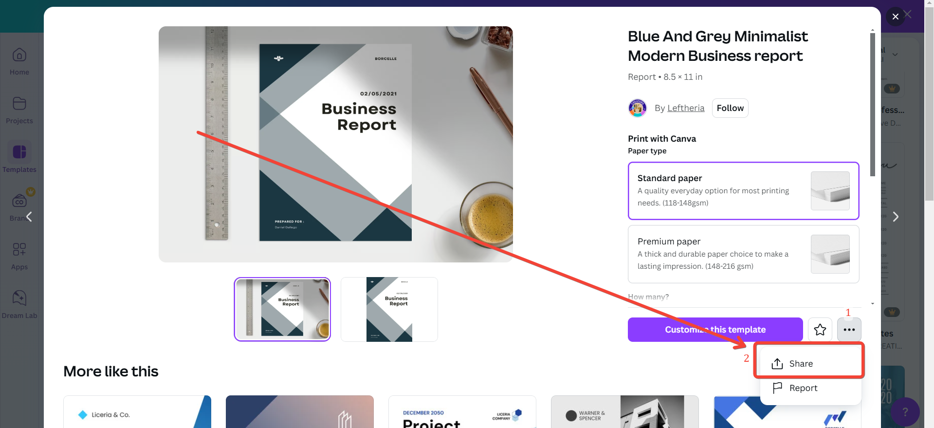 Once you’ve purchased or replaced the watermarked elements, click on the Share button.