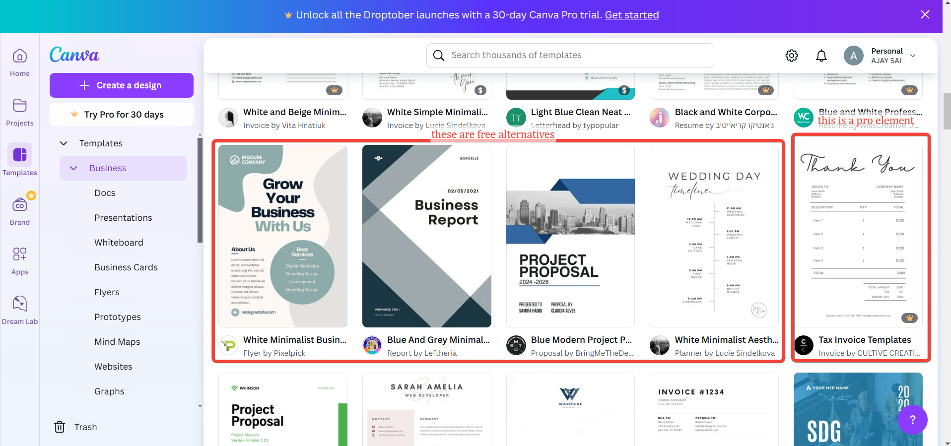 If you prefer not to pay, search for free elements within Canva’s library.