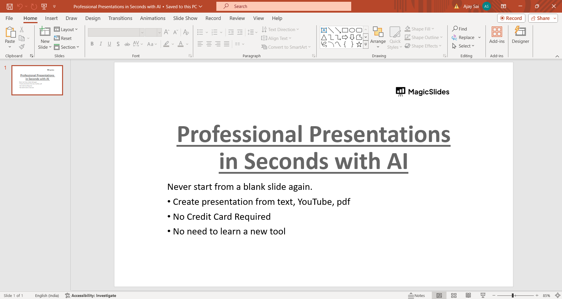 Launch PowerPoint and open the presentation containing the slide you want to rotate. Navigate to the slide sorter view or simply select the slide thumbnail from the left-hand pane.