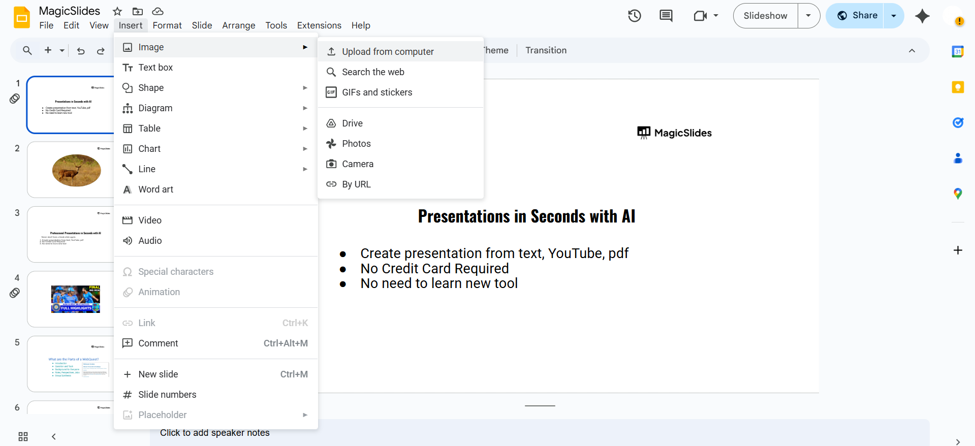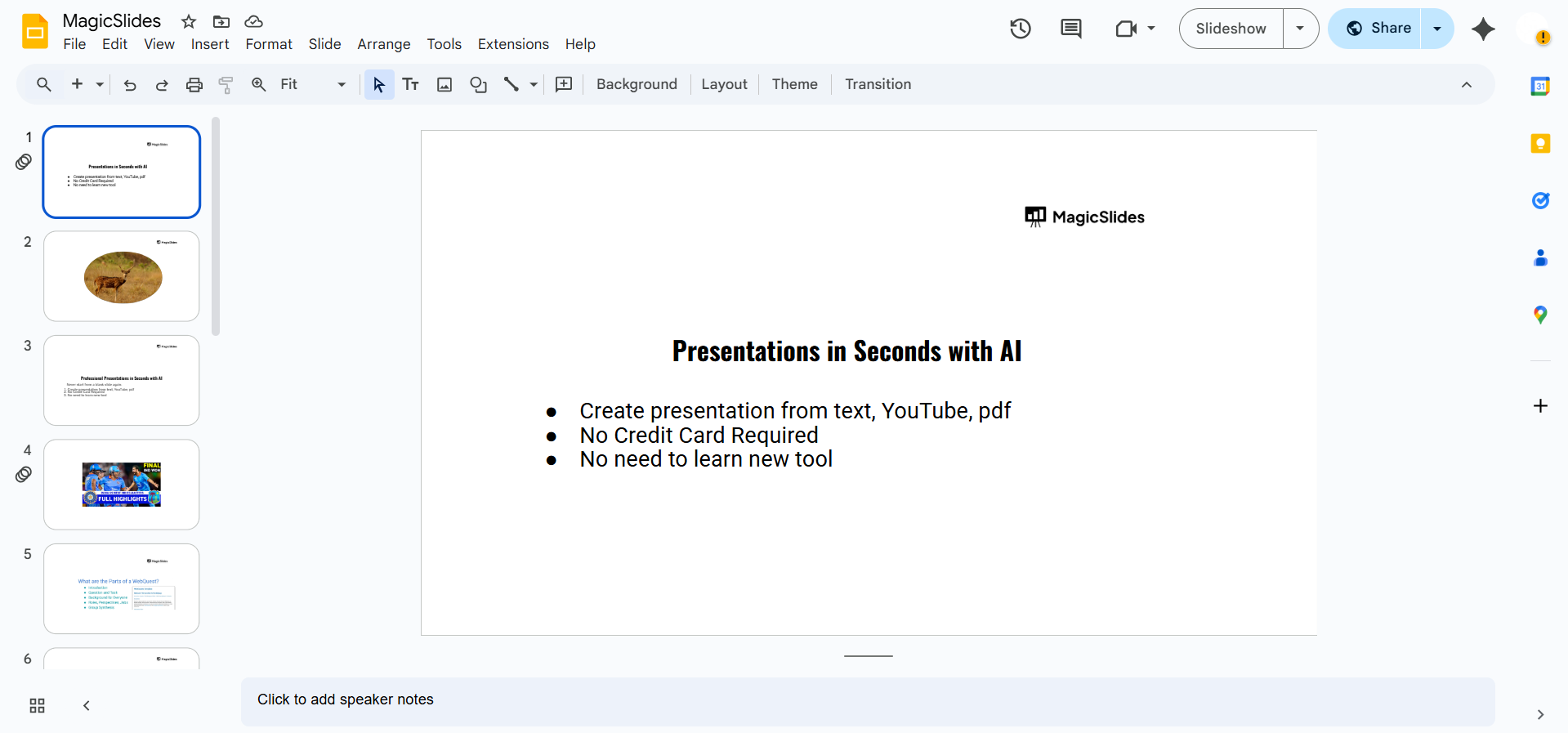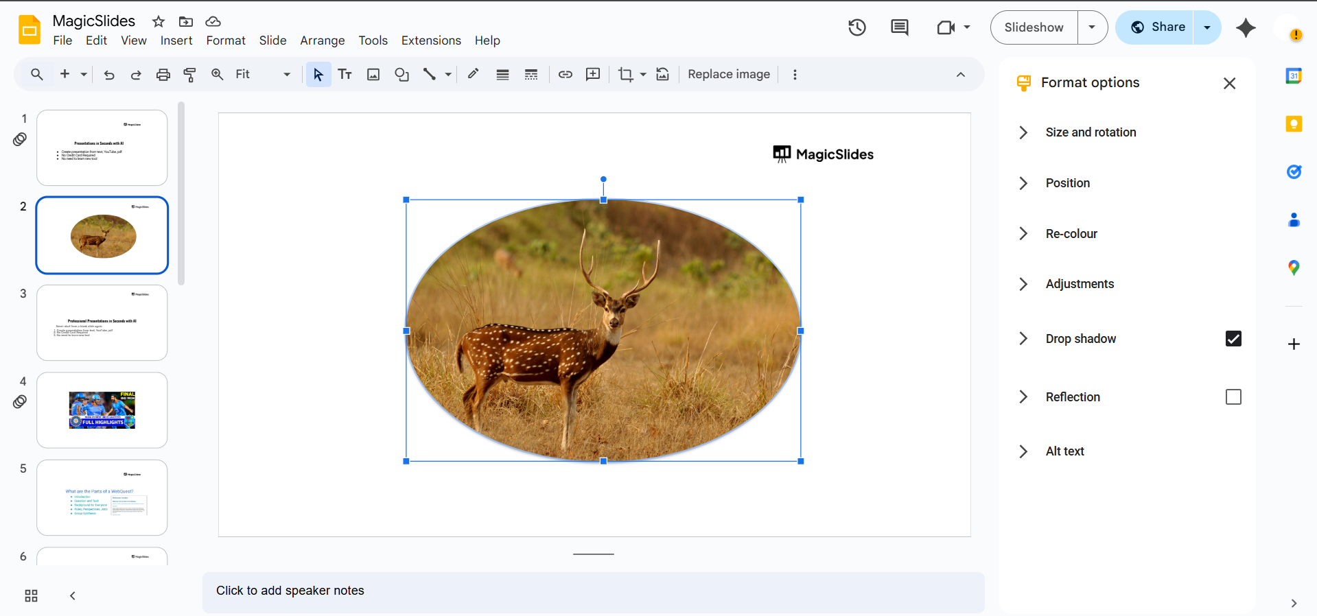 Rounding image corners in Google Slides enhances the visual appeal, but if you want an AI-powered tool to create beautifully formatted slides instantly, try MagicSlides.app generate professional presentations in seconds!