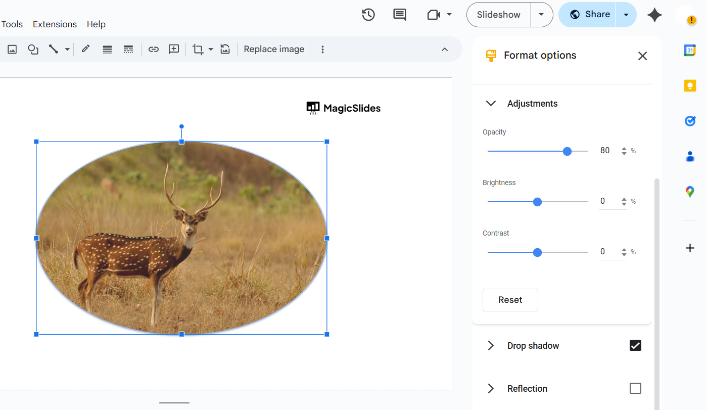 Follow the step-by-step guide below to round image corners in Google Slides.