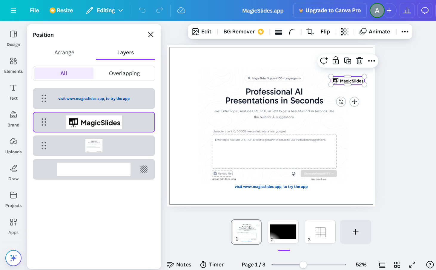 While Canva doesn’t have a traditional “layers panel” like Photoshop, it offers intuitive ways to manage and view overlapping elements.