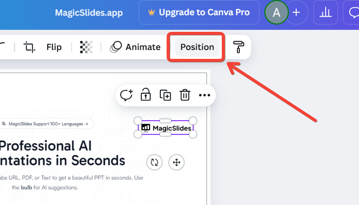 With an element selected, click on the "Position" button in the top toolbar.