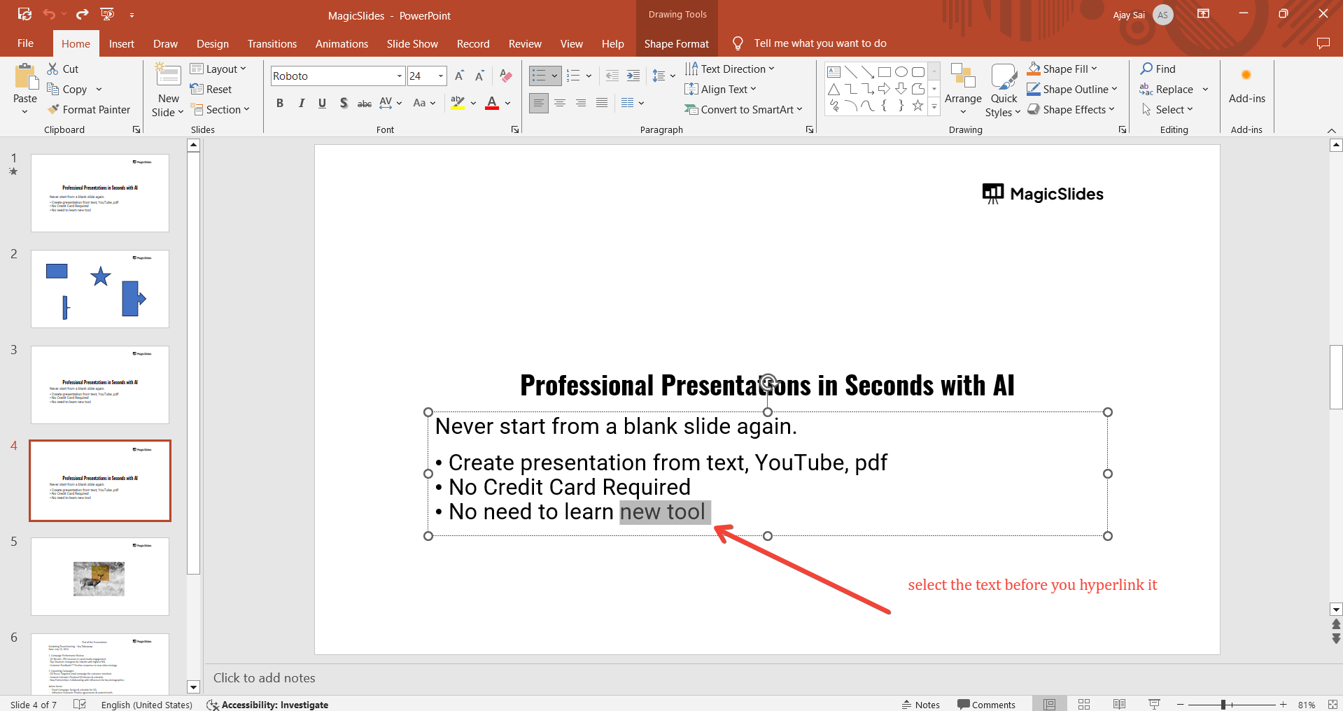 Step 1: Insert Multiple Hyperlinks on Your Slide