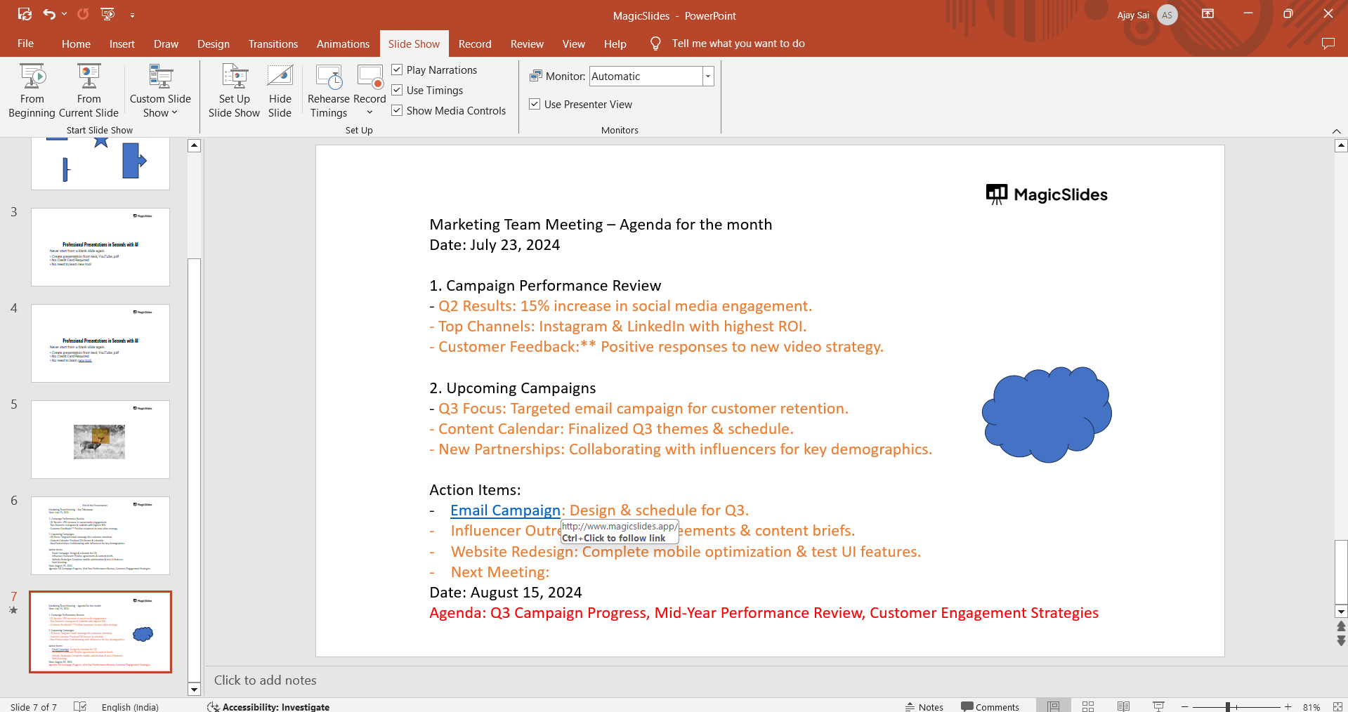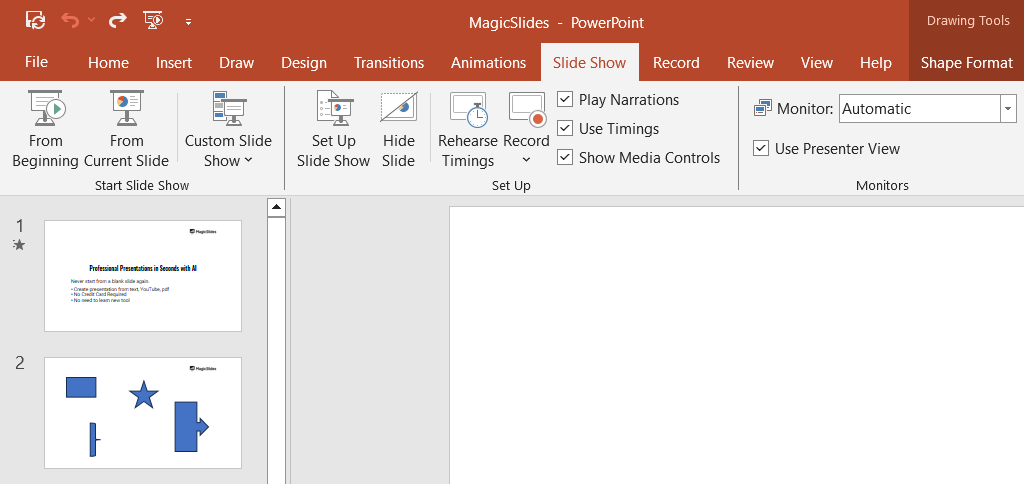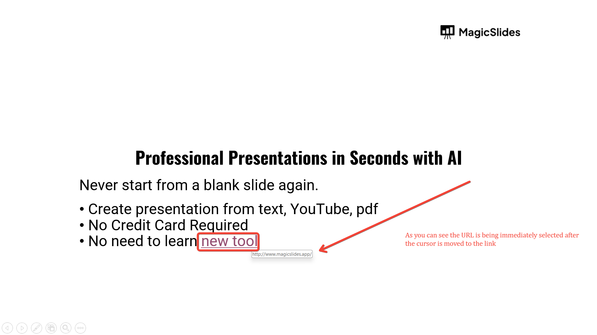Tired of maing presentations? what if we tell you you can make presentation with just a prompt, convert YouTube videos to PPTs, convert website content to PPTs? Yes! checkout magicslides.app that does all and enjoy the free credits to make presentations in seconds.