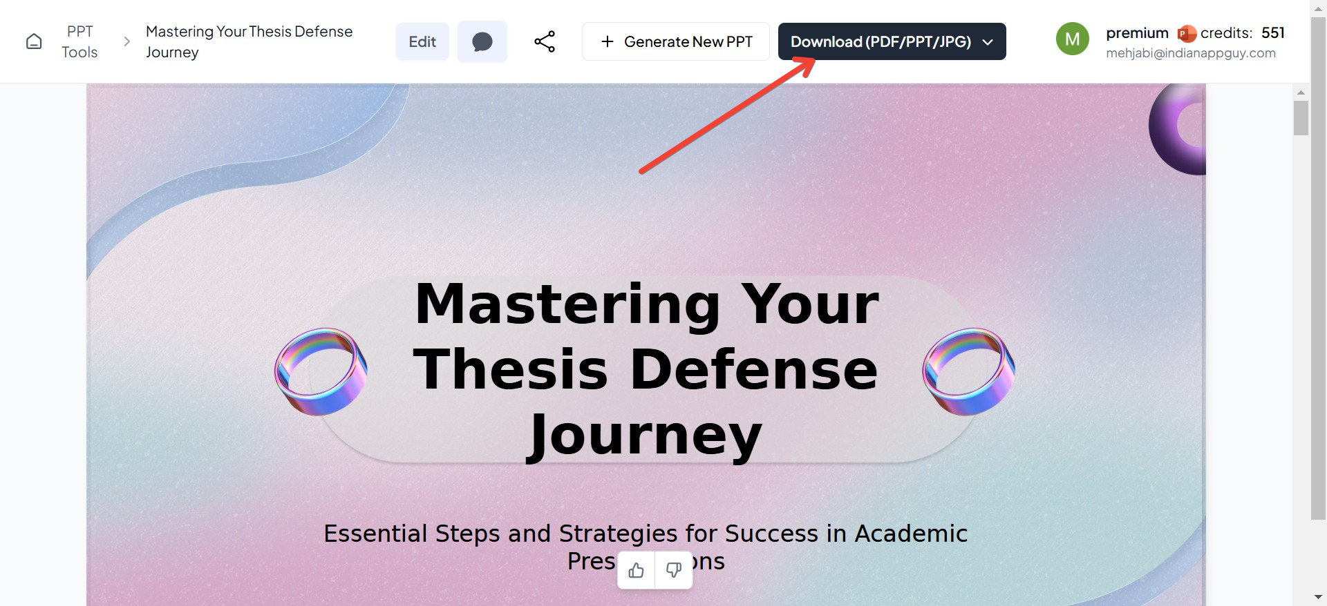 - Choose your preferred format (PPT, PDF, or JPG).