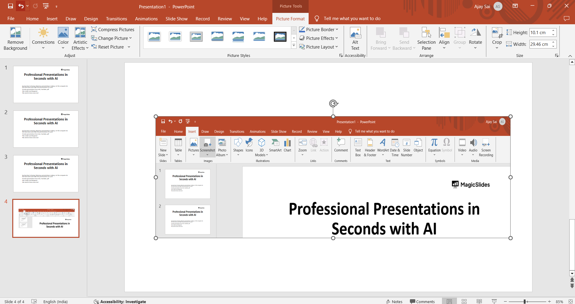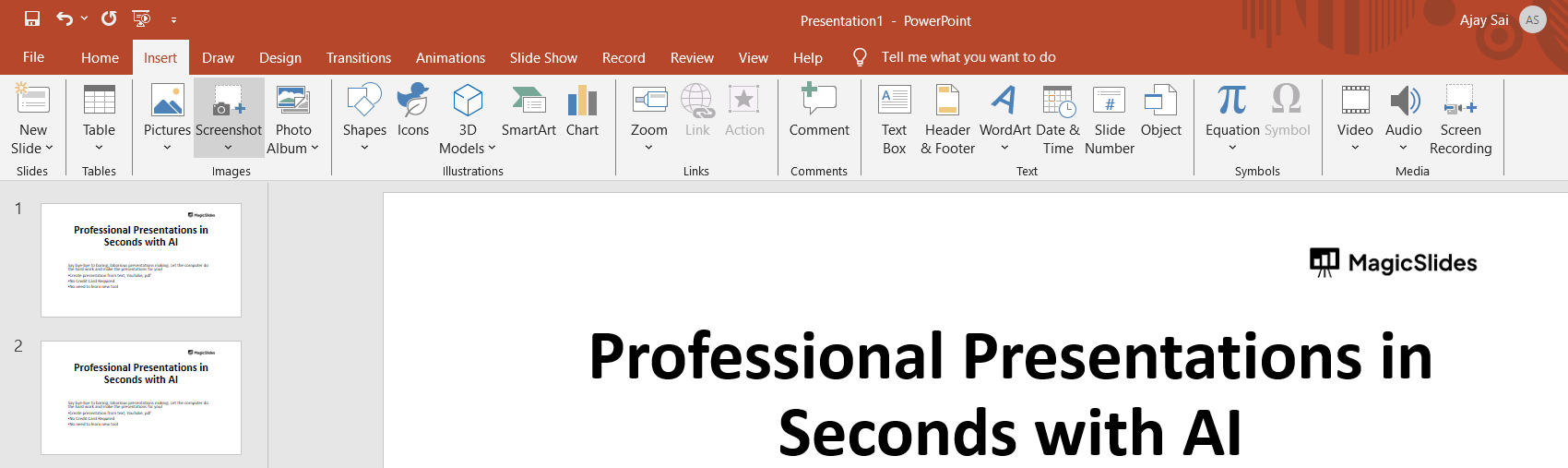 How to take screenshots in Powerpoint